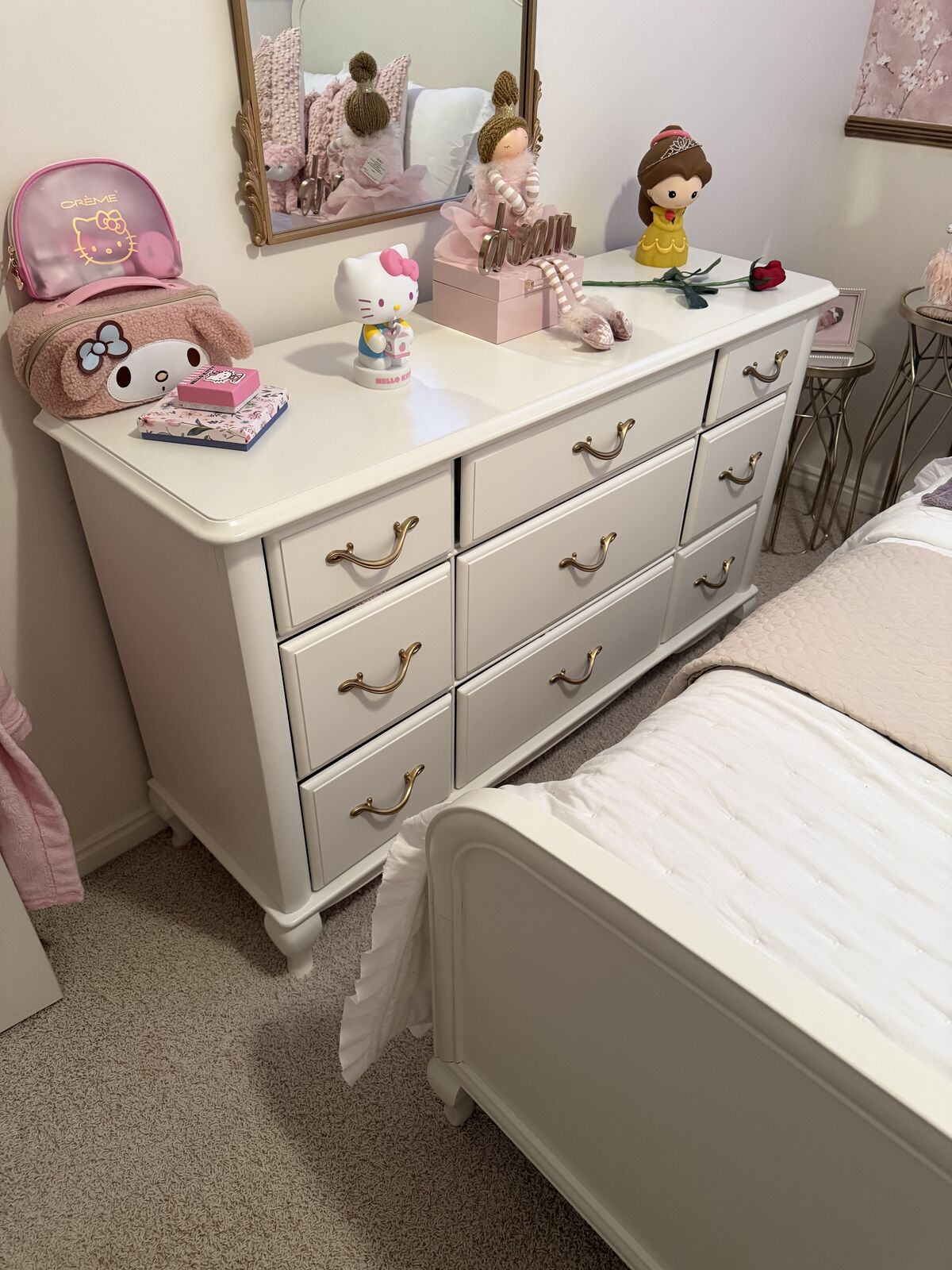 Beautiful white bedroom set in excellent condition! Perfect for a little girl’s room with a soft, elegant look.