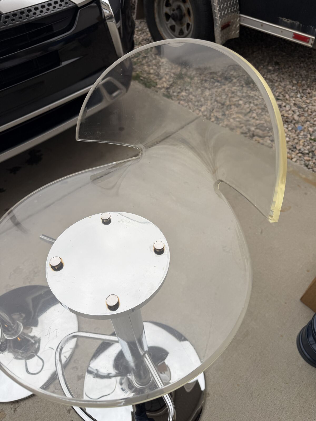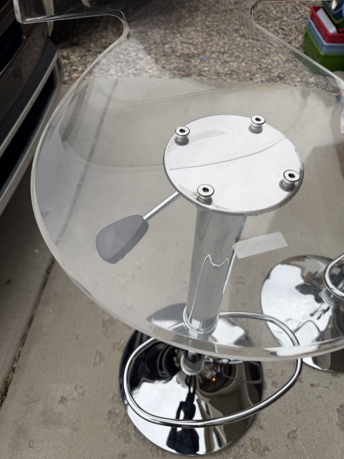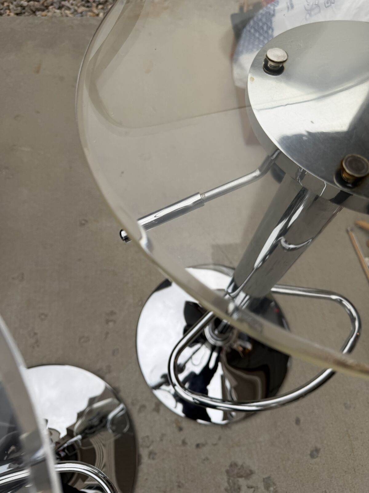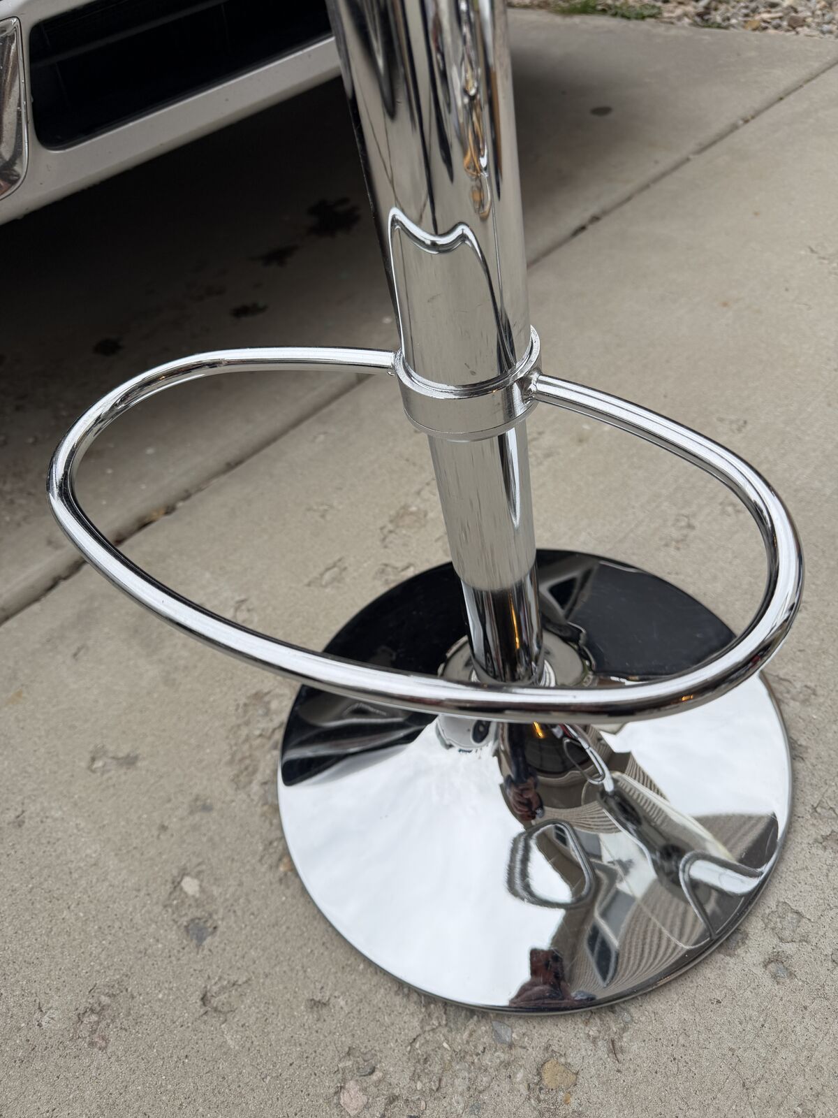 ApplePayA set of two MCM style barstools adjustable height. They are in very good condition. They are not exactly the same but very similar. See pics for complete description.  they each adjust from 21 inches up to 32 inches high.