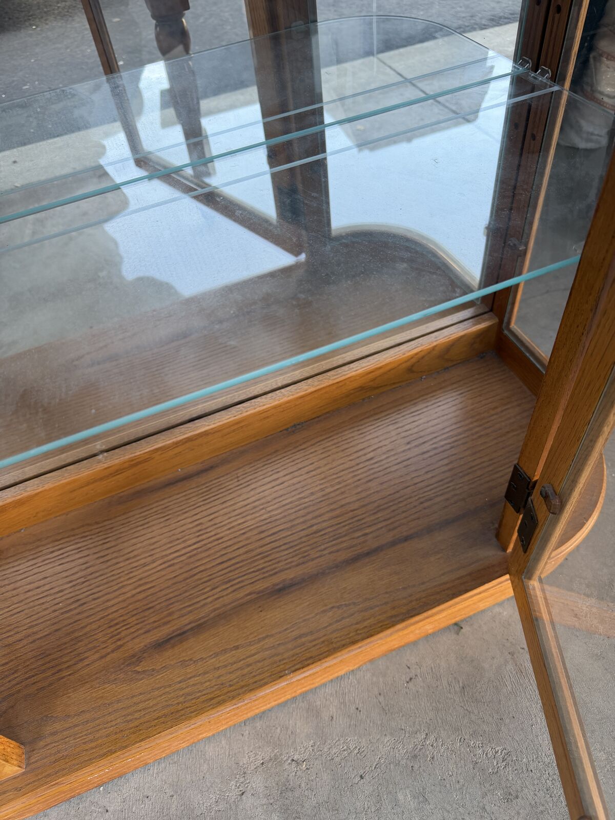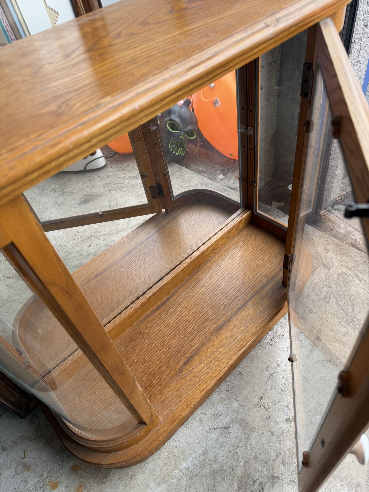 ApplePayThis is an Oak Table Top Curio Cabinet - Mirrored Back with Electric Lighting and 1 Glass Shelf - It is in very good condition. It is 29" Tall x 32" Wide x 11" Deep See pics for complete description
