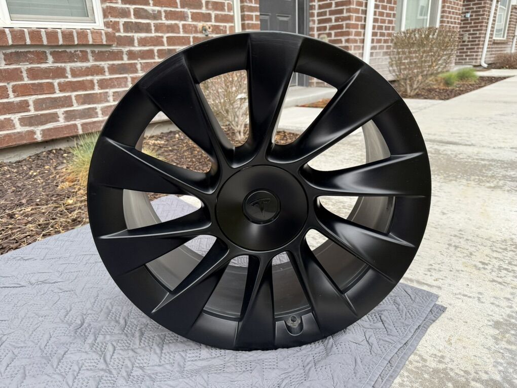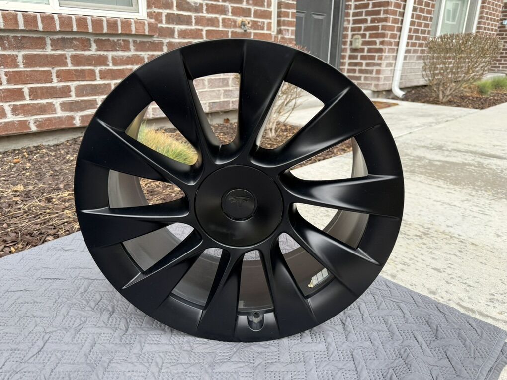 Excellent condition Tesla 20 Inch Induction Wheels in Satin Black, from a 2024 Tesla Model Y, with 9,000 miles. One wheel has minor curb rash (shown in pictures). Selling because I no longer need them.