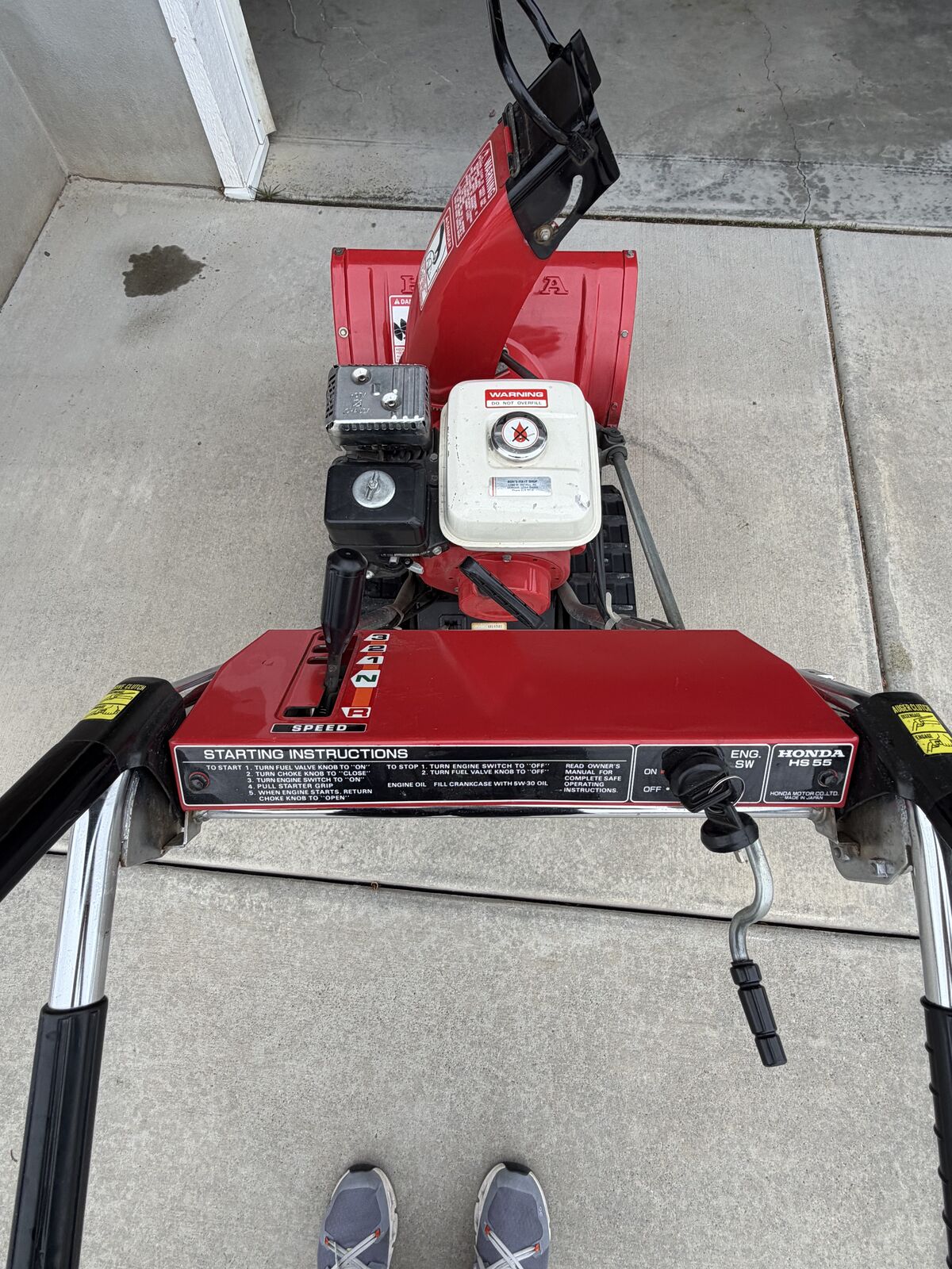 ApplePayNow that winter has finally arrived, this Honda HS55 dual-stage snowblower is ready to help. It's in great working condition. This is the track-drive model, making it a powerhouse for steep driveways, icy conditions, and heavy snow. Key Features & Details: