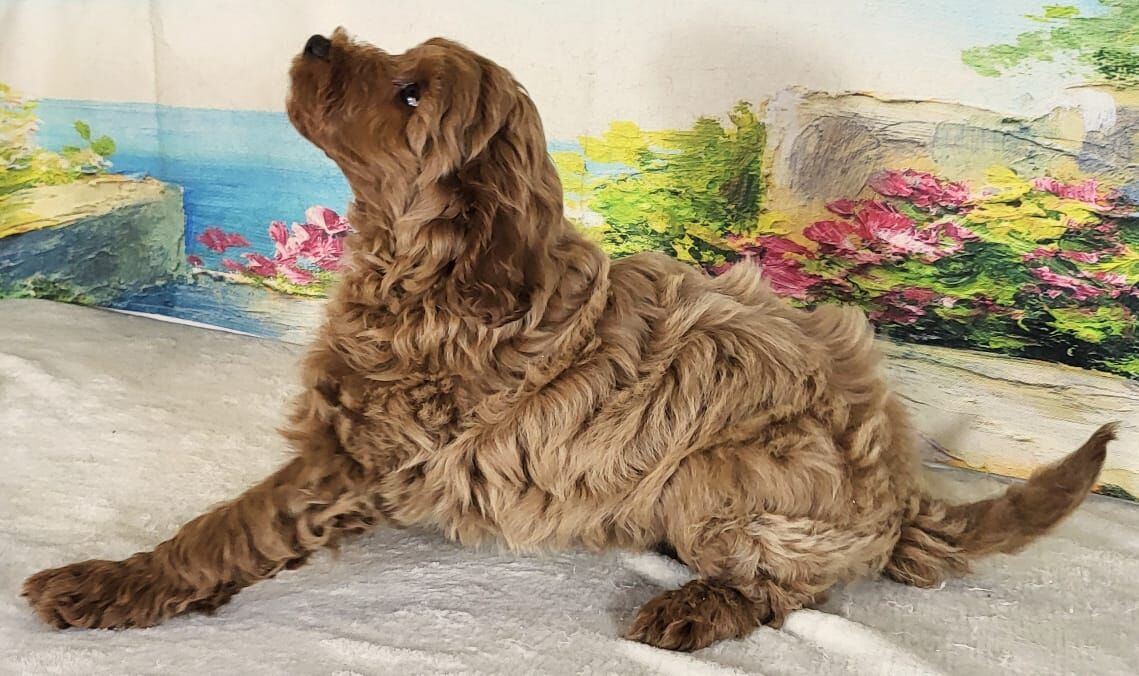 ZelleWith her soft curls, gentle expression, and affectionate personality, Liza is a truly special micro Goldendoodle. Liza is a sweet and loving companion who enjoys playful moments but is equally happy snuggling during quiet time. She feels most secure when close to her family, soaking up attention and affection. Expected to remain petite, she’s an excellent fit for apartments or homes of any size.