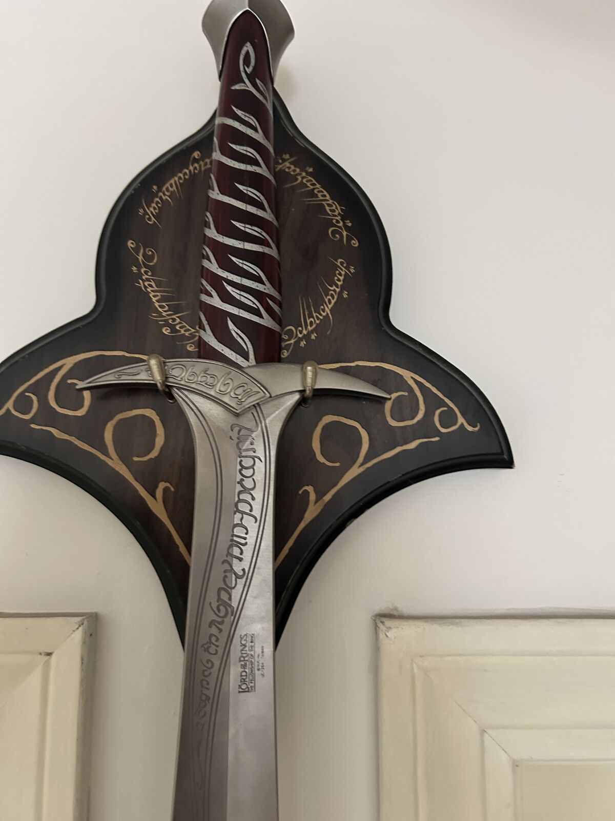 Beautiful Lord of the Rings style Elvish dagger wall display with decorative plaque backing.