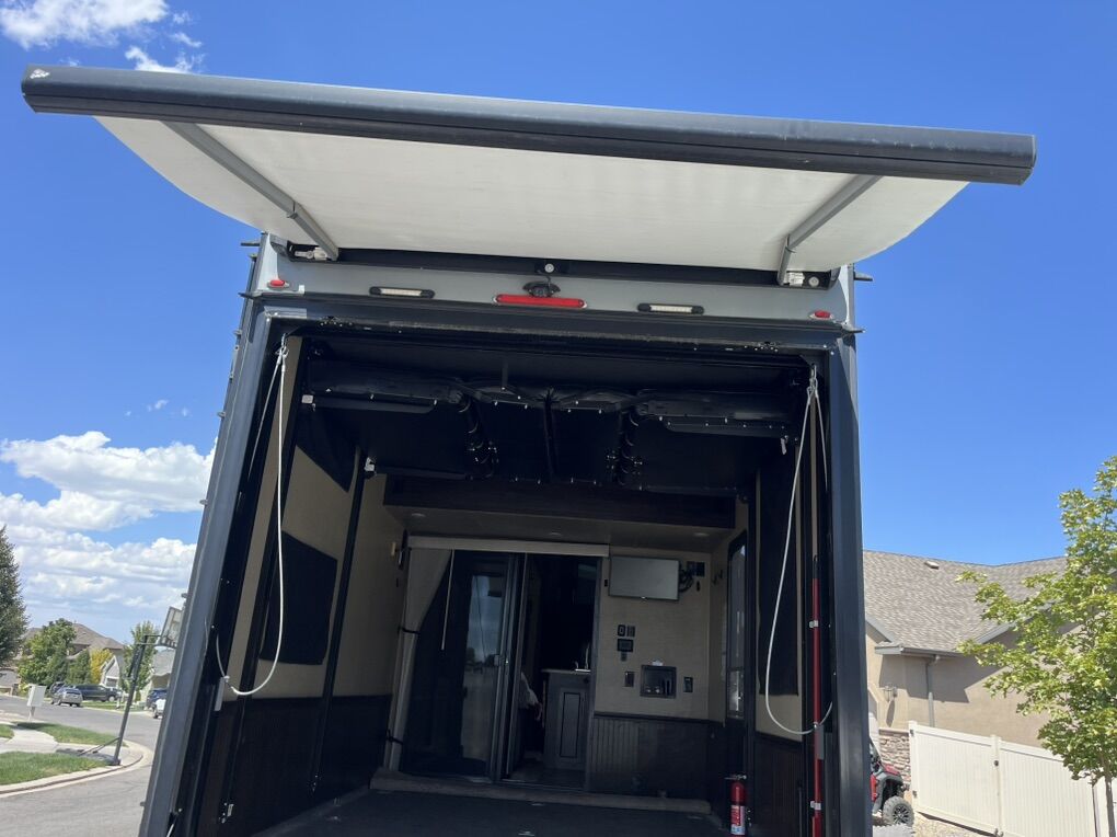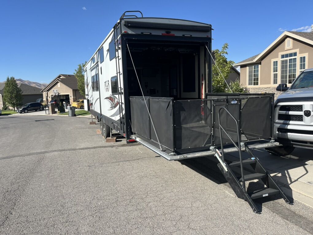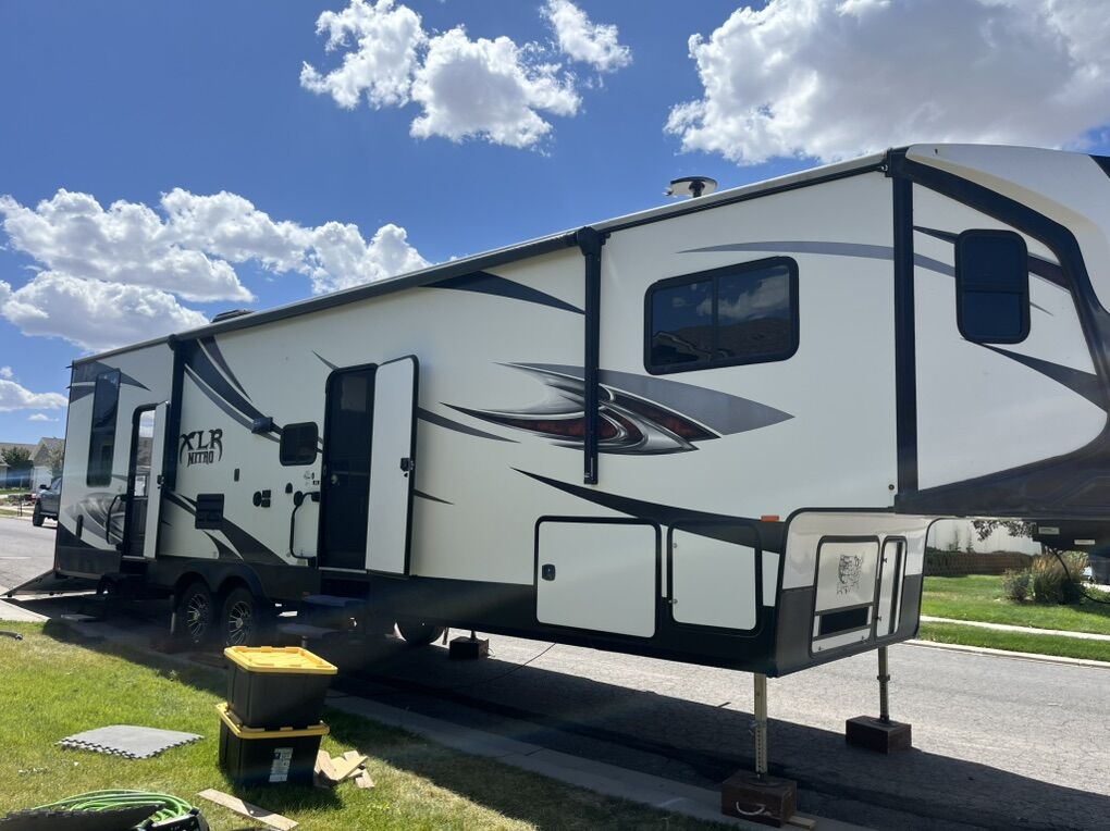 Price Reduced!!!! Selling our beautiful 2017 XLR Nitro 35VL5 fifth wheel Toy Hauler. Trailer is in great shape and only used 10 times in the last four years we have had it. We live the Trailer but don’t use it enough to keep it. New H rated tires installed last year(less than 2000 miles on them) as well as new brakes installed two years ago. The Original Onan generator has less than 280 hours on it and services 20 hrs ago. Upgraded batteries increases Boon-docking. Wired for solar panels. Fence,gate and stairs for rear deck are all in great shape no rips or tears. Rear pull down screen has no rips or tears. Pass thru front storage. Onboard 30 gal fuel cell for generator and toys. 92 gallon fresh water with 6 gallon water heater and water tank heater to prevent freezing. Dual 30 gallon grey water tanks. 30 gallon black tank. 12foot separate garage will fit two seat sxs or two full size touring motorcycles. Happy Jack and convertible couch bed in garage( both queen size). Single bed in loft, King size bed up front. Couch is a four seat reclining couch. Two slide outs both on the far side on entry door, one in main living area and other is master bedroom wardrobe. Spacious bathroom with porcelain toilet and shower with enough room to turn around in. 3 tv’s in the trailer, large n master bedroom another large in main living area and a small tv in garage with mounts and hookups for outside tv. Propane/electric fridge(12v), 110v microwave. Comes with 50amp cord with 20amp adapter, 2 large propane tanks along with two sewer hoses(in under mount storage). Fresh water and black tank rinse hoses. Also included is factory installed rearview camera and monitor screen. If desired, comes with Anderson Hitch. We have enjoyed this Trailer and pulled great when we were able to take it out. This Trailer is not perfect, but is in great shape for a great price(about 1/3 of the price of new). Clean title in hand Asking $32000/OBO willing to look at an enclosed trailer for consideration of partial trade. Call or txt Neal @ 801-722-5915 txt pref. Thanks for looking