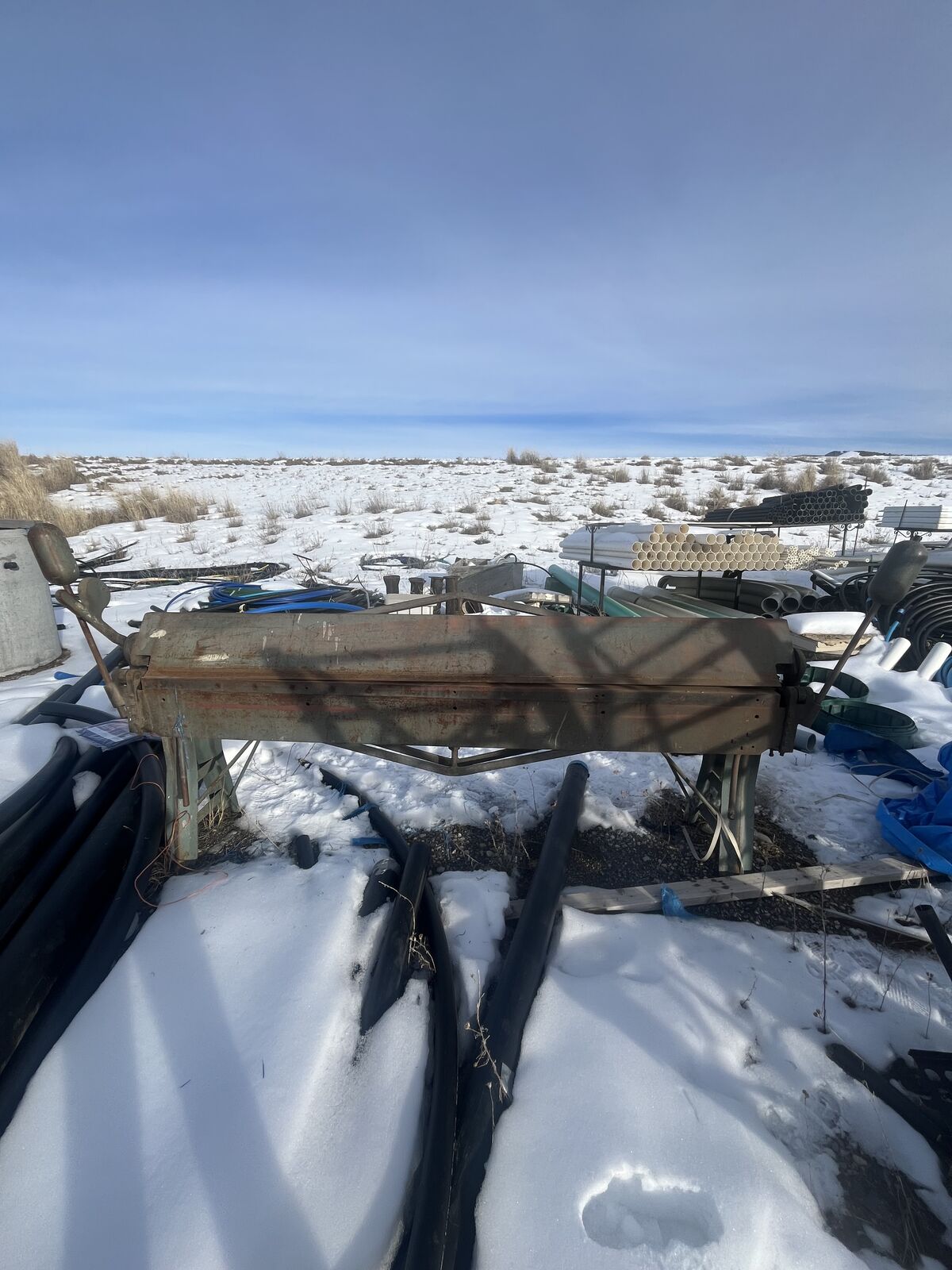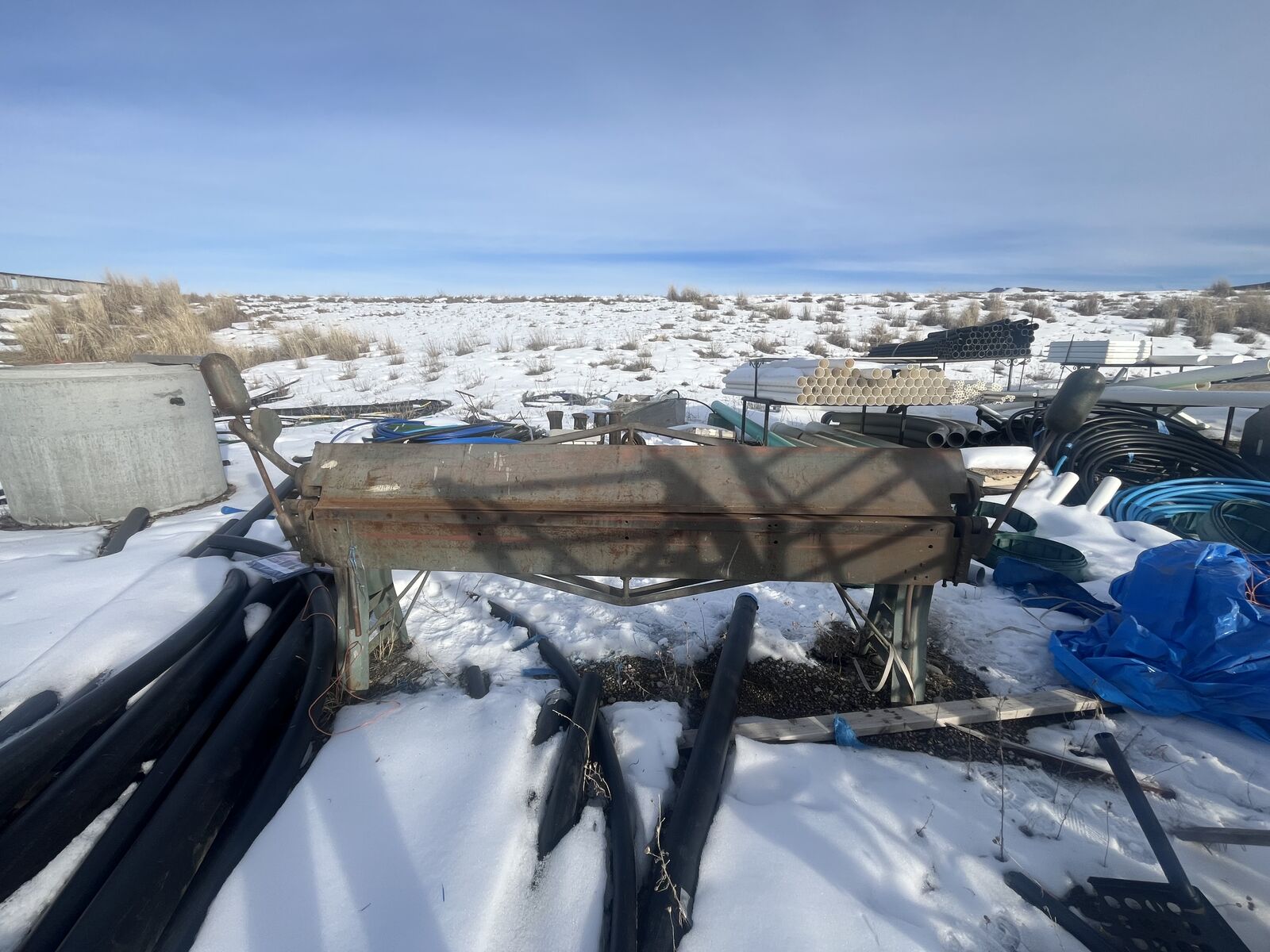 Selling this used Chicago Dreis & Krump 818 Straight Break. Fully operational. 8' x 18 ga. SN 92762. It is missing the angle stiffener on the apron. It has been outdoors for a few weeks covered with a tarp. I removed it to take the pictures and replaced it after. We just don't have room for it in our shop. If you have questions or would like video or more pictures please let me know. Asking $3,500 OBO
