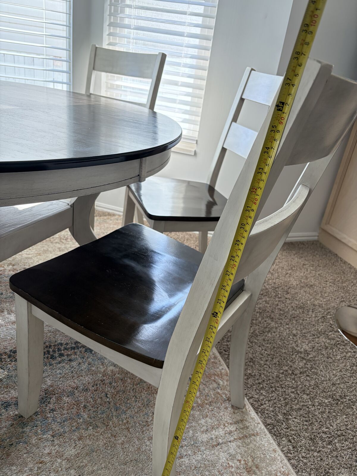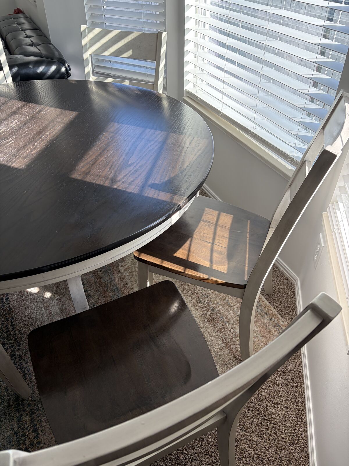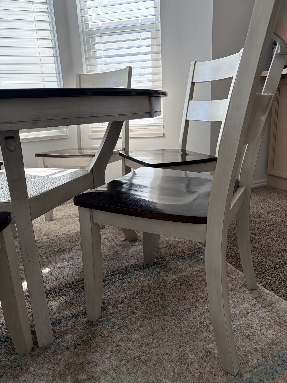 VenmoRC Willey Round 54 inch table with 6 chairs. Light wear and tear on the top of the table.