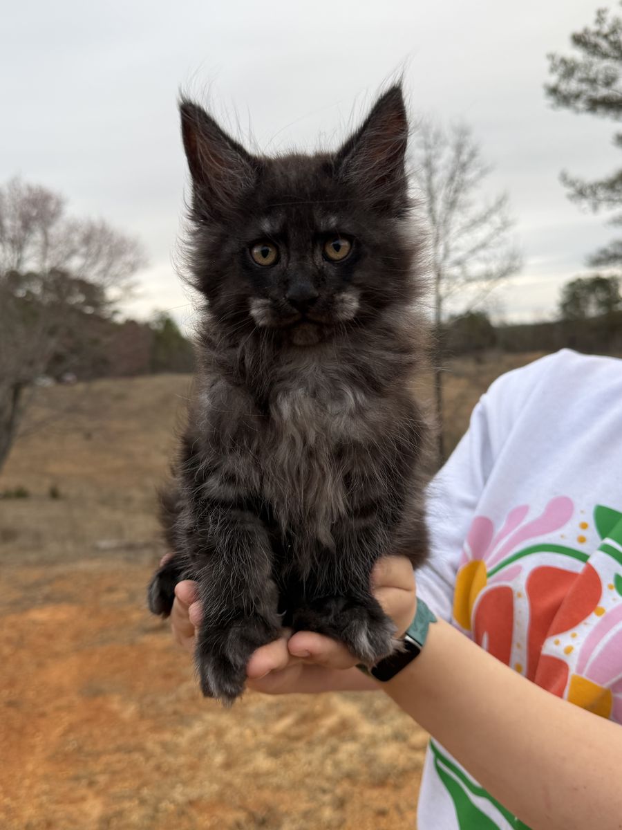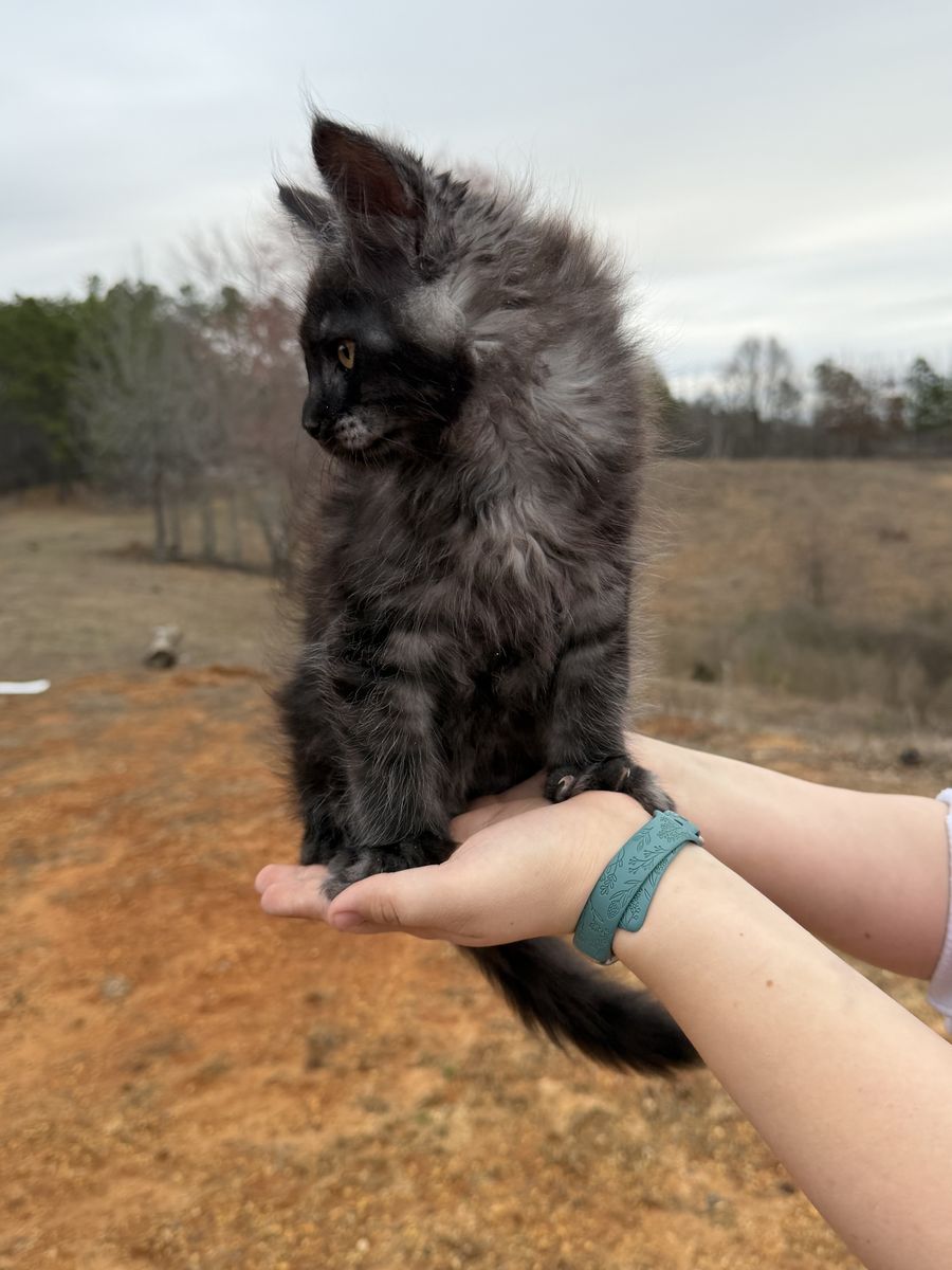 ZelleMaine Coon kittens currently 10 weeks old. Black smokes, black, and red tabby available. TICA registered. Dad is 19 pounds imported from Poland. The mother is 14 pounds from imported parents with Russian lineage. First vaccine, multiple dewormings, health tested bloodlines. Kittens are $3,200 as pets with spay/neuter agreements.