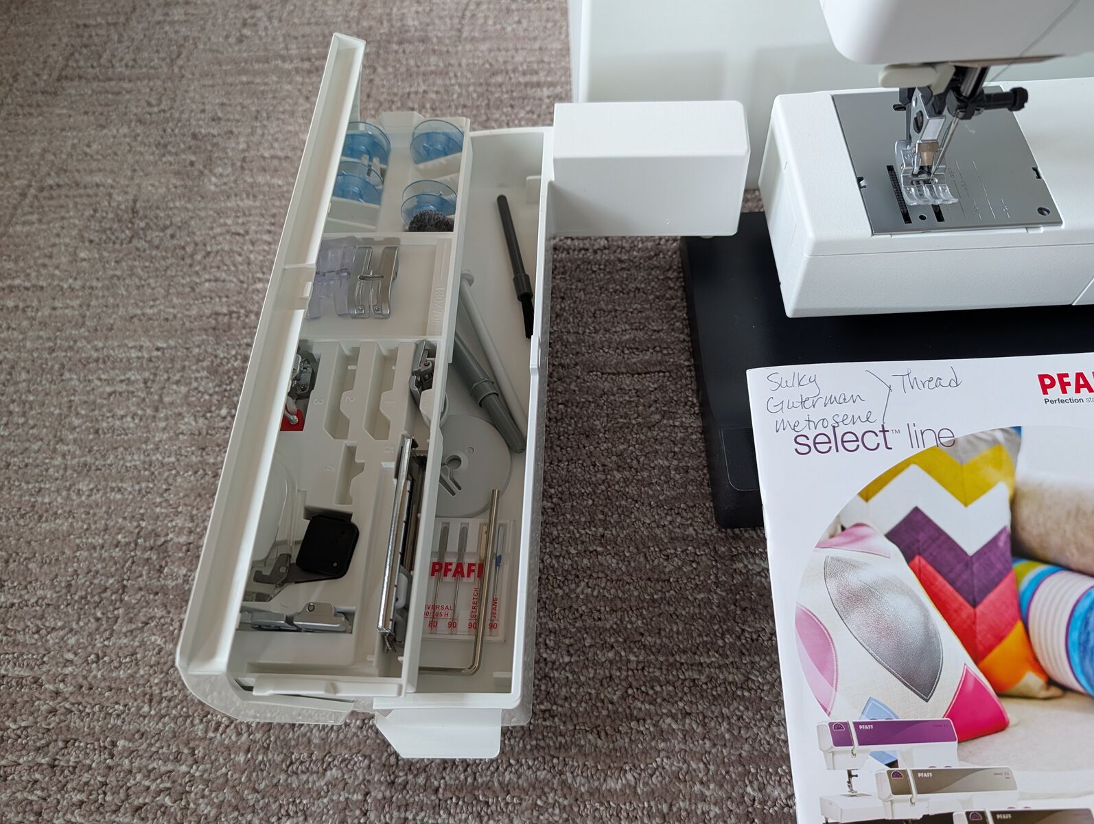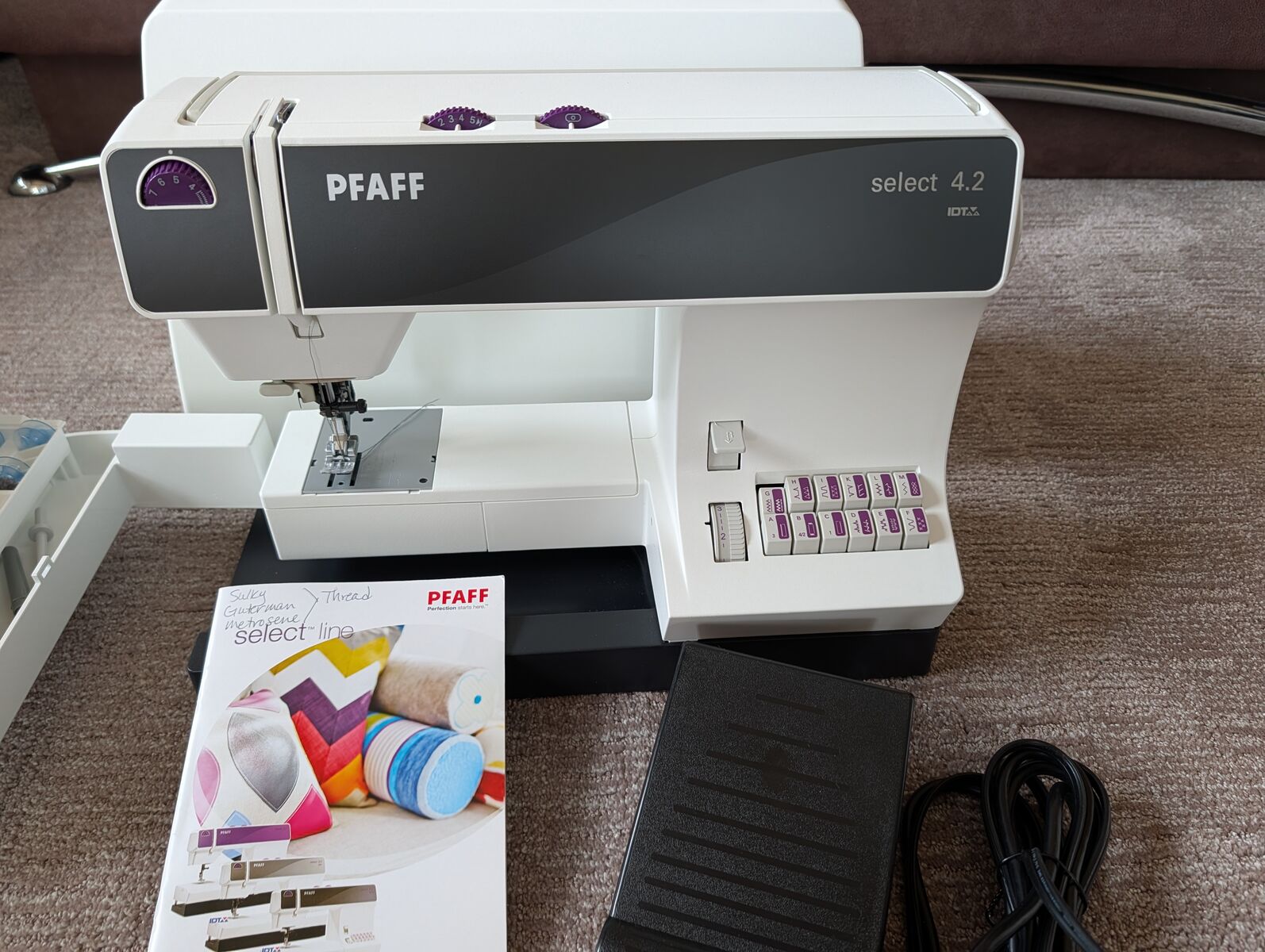 VenmoMy mother purchased this with good intentions. This is a new sewing machine, NEVER used, just treaded by the folks that sold it to her. Save yourself $200 (plus tax), new this machine is $850. Instructions and all pieces it came with are in the machine tray. The comments about this machine say it is robust, user-friendly mechanical sewing machine featuring 40 stitches, an integrated needle threader, and the signature IDT (Integrated Dual Feed) technology for even fabric feeding. It offers high-speed sewing, consistent needle piercing power for heavy fabrics, and includes eight presser feet.