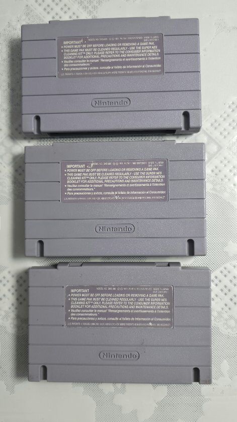 Pre-Owned SNES Nintendo Video Games (3) in excellent conditions. All 3 games for $60 or individually will increase the price. See the photo, text message is better, see my other adds, thank you.
