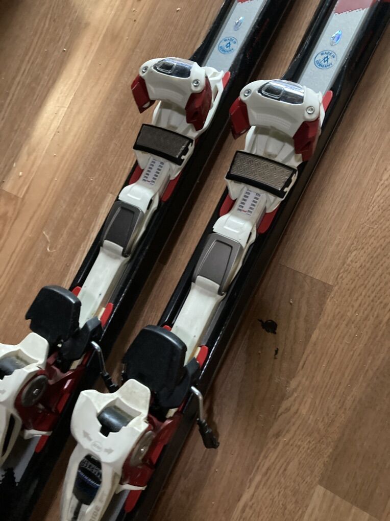 Bindings adjust to just about any size they have a lever you lift to adjust no tools needed