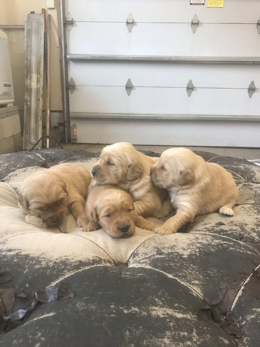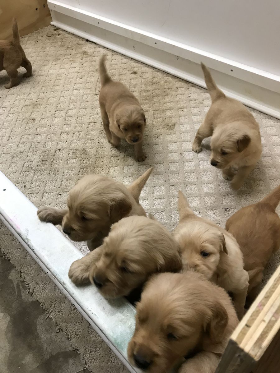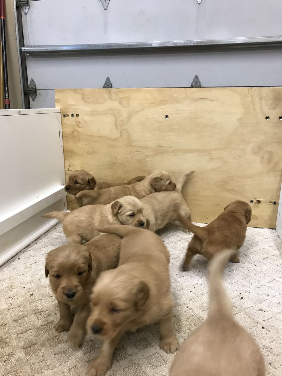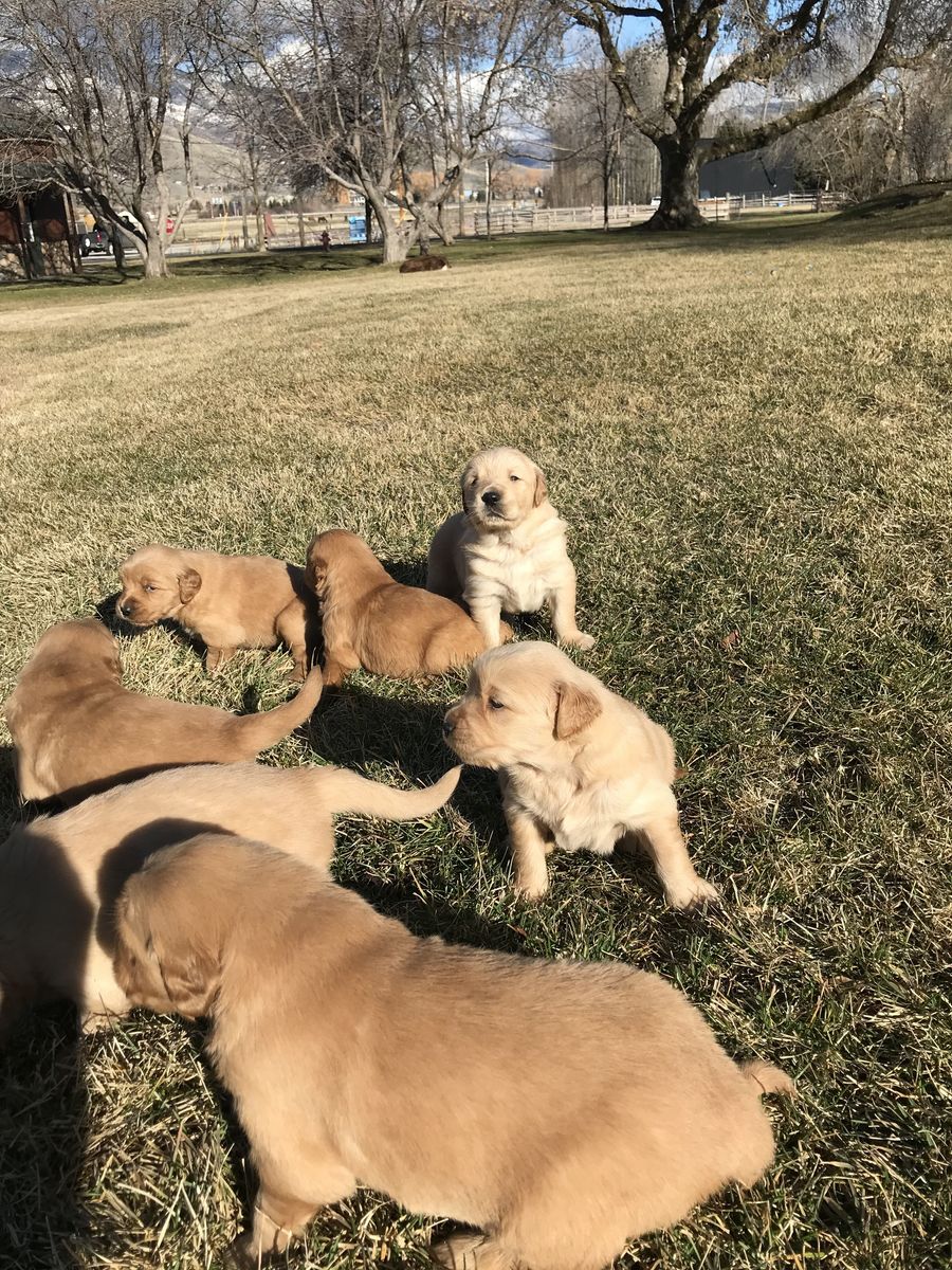 VenmoMeet Paisley and Dukes litter of puppies! They welcomed 4 girls and 4 boys. They are beautiful puppies. They are four weeks old now and will be 8 weeks old the first week of April. They will be ready for their new homes just in time for Easter and Spring/Summer fun. Momma Paisley is heath tested and genetically clear through breeding. She is a beautiful dark red golden. She lives here on a farm in the mountains of Utah. She has great drive and is a perfect Field bred Golden Retriever. She loves hunting and being in the mountains. The dad Duke belongs to a different program but is heath tested and clear. He is a more traditional golden color, very friendly and playful. Both parents are a little on the smaller side for goldens. Paisley is about 65 lbs, and Duke is about 70 lbs. The perfect size for hunting. The puppies are a good variety of color and will be a rich golden to dark golden color. They will come home dewormed at 2,4,6,8 weeks of age, health/vet check, AKC papers, UTD vaccinations, puppy package, and loved! A $200 deposit will hold your spot in the picking order. Picks start at 6 weeks. Breeding rights are an additional $100. Message or text with any questions. Thanks for looking. Most of the pictures are of the puppies and Paisley. One is of Duke the father. Puppy pictures will be updated weekly.