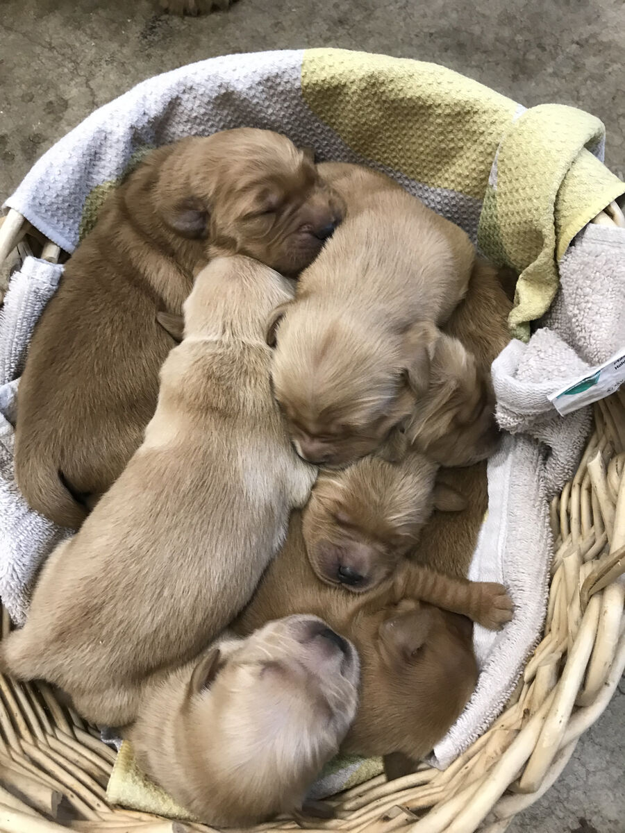 VenmoMeet Paisley and Dukes litter of puppies! They welcomed 4 girls and 4 boys. They are beautiful puppies. They are two weeks old now and will be 8 weeks old the first week of April. They will be ready for their new homes just in time for Easter and Spring/Summer fun. Momma Paisley is heath tested and clear through breeding. She is a beautiful dark red golden. She lives here on a farm in the mountains of Utah. The dad Duke belongs to a different program but is heath tested and clear. He is a more traditional golden color, very friendly and playful. The puppies are a good variety of color and will be a rich golden to dark golden color. They will come home dewormed at 2,4,6,8 weeks of age, health check, AKC papers, UTD vaccinations, puppy package, and loved! A $200 deposit will hold your spot in the picking order. Picks start at 6 weeks. Breeding rights are an additional $100. Message or text with any questions. Thanks for looking. Most of the pictures are of the puppies and Paisley. Two are of Duke the father. Puppy pictures will be updated weekly.