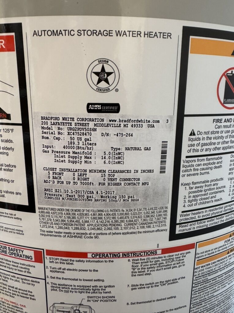 Installed mid 2022, pulled out and replaced with a tankless Dec 2025. Has a 6 year warranty and only used in the home just over 3 years.