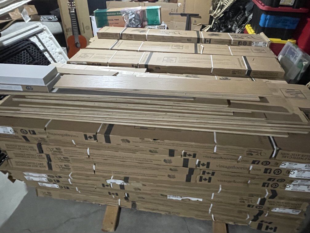 flooring was used to finish a couple rooms in the basement but we never got around to doing the rest of the basement. there's 64 boxes that are unopened. they're 3ft by 5 inches. I paid around $10,000 for it. asking $5,000 OBO