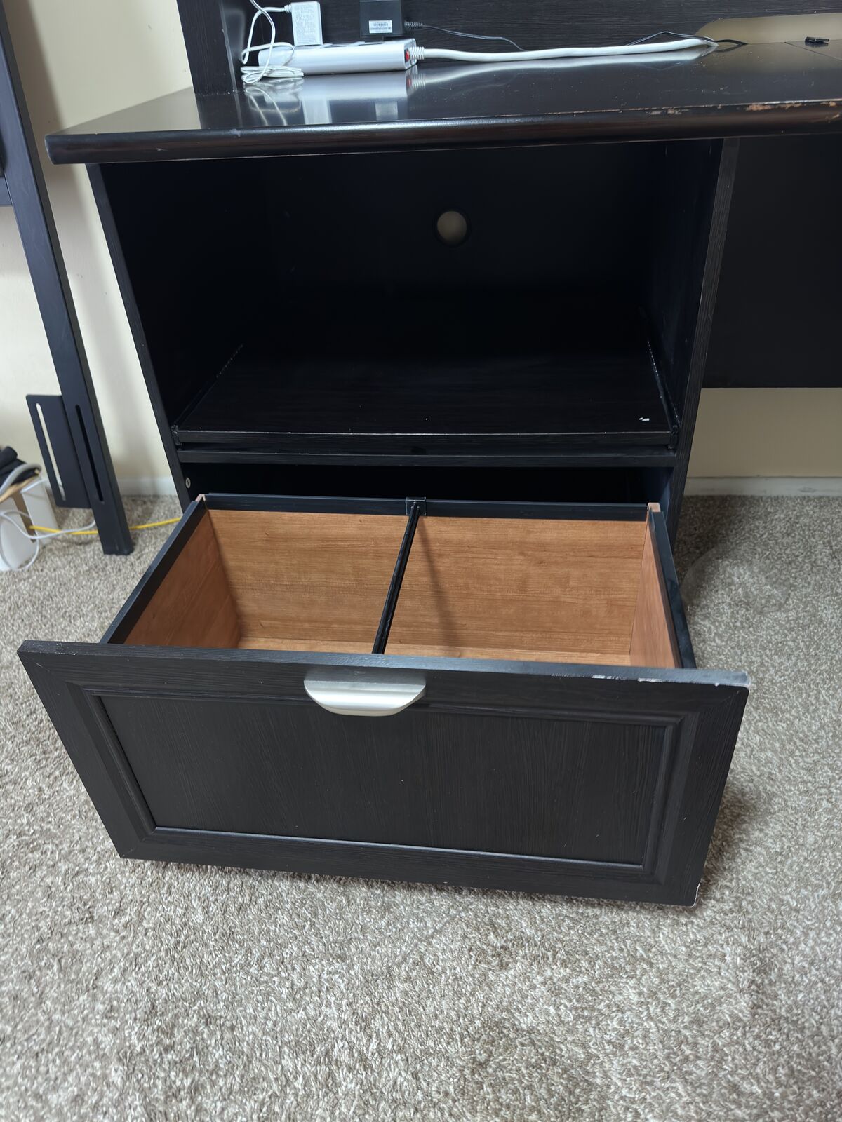 No kids or pet, adult owned. no smoking weird smells. Im selling this because im moving. incredible piece of furninture for your home office.
