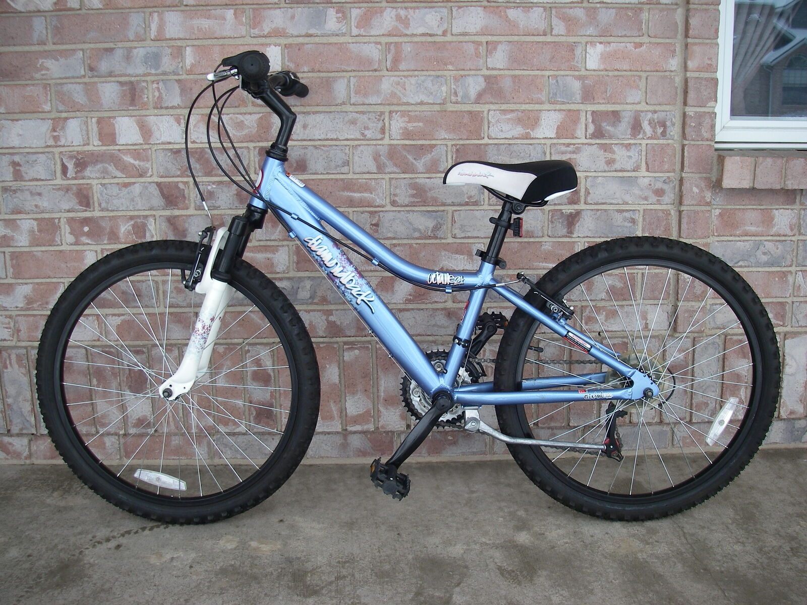 GIRLS / WOMENS 24" (wheel size) ALUMINUM FRAME, DIAMONDBACK OCTANE DEVINE, MOUNTAIN BIKE, 21-SPEED, SHOCKS, KICKSTAND, BLUE.