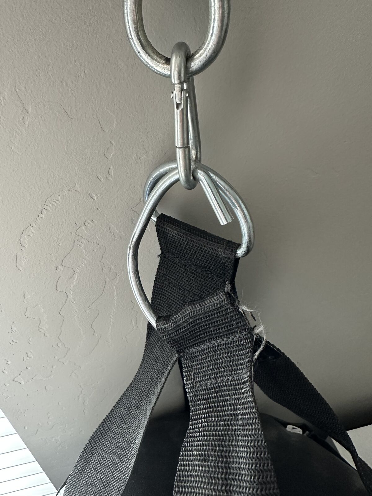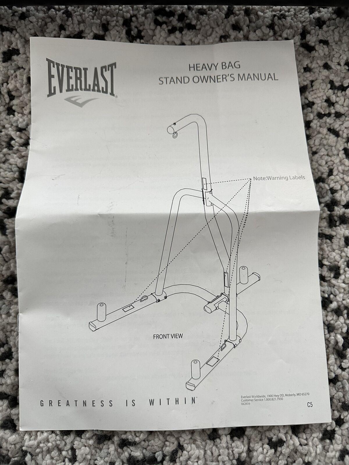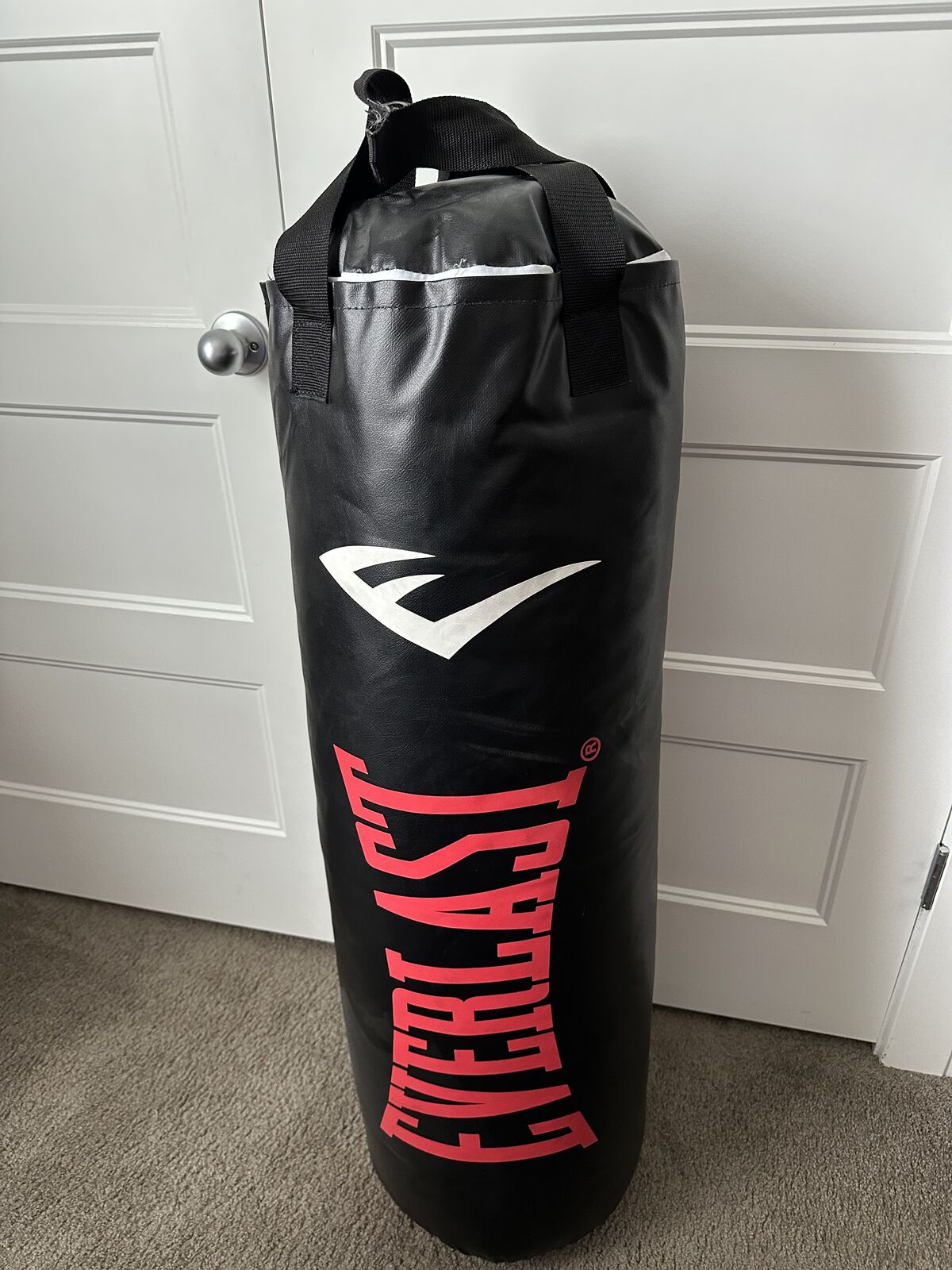 VenmoThis is an Everlast heavy bag stand and punching bag, including gloves and wraps. One of the D-rings on the bag is bent out of shape and will need to be repaired or replaced (see image).