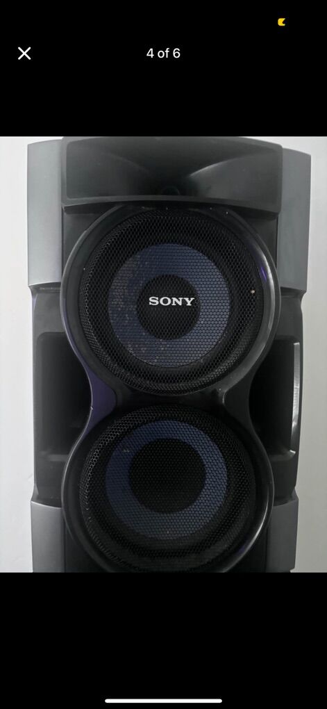 ApplePaySony speakers with radio. Still in really great shape. Willing to negotiate price a little bit. Bass is great too!