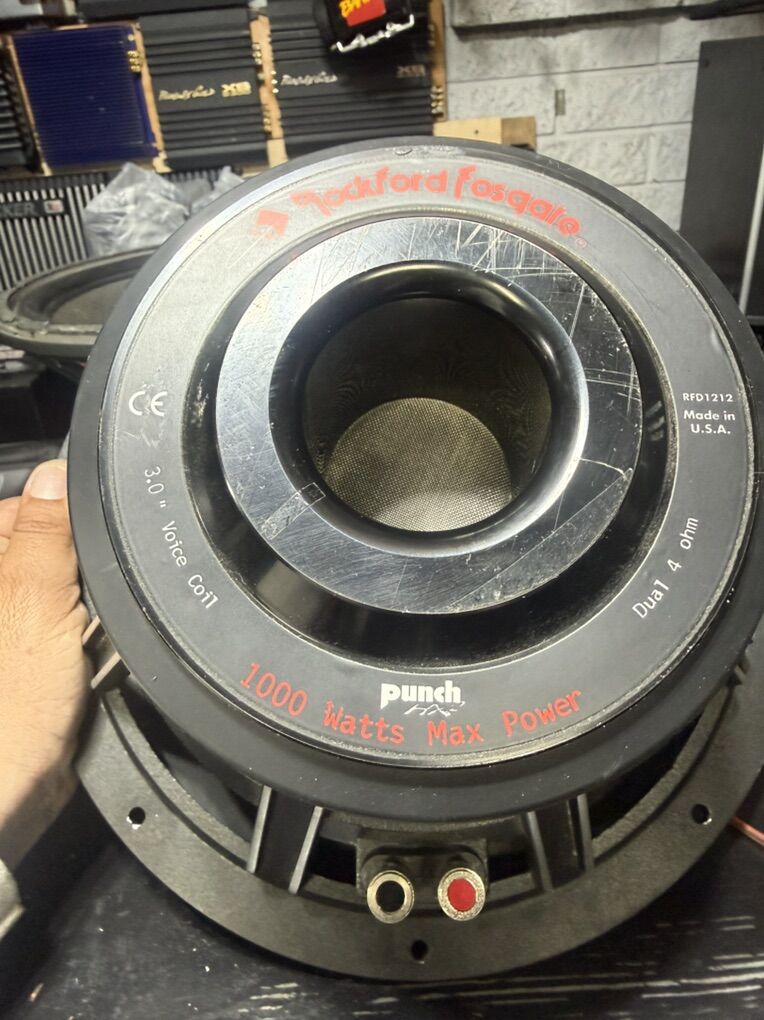 ApplePaySingle DVC 12” Rockford sub Vintage sub in good condition Rubber surround and stiff pulp paper cone Dual 4 ohm coils , 500/1000 rms/peak power handling 3” voice coils $75