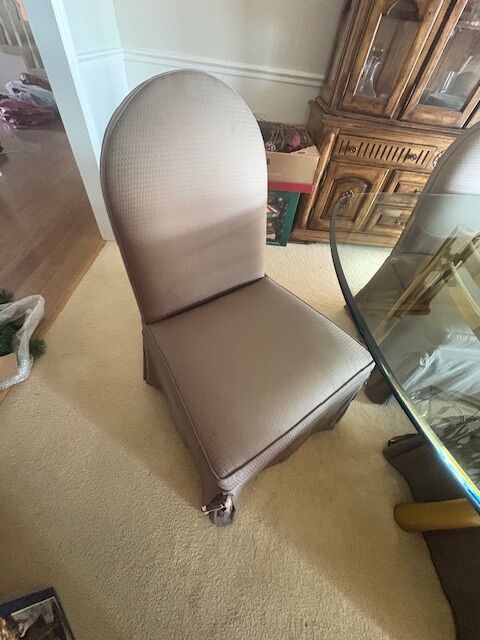 VenmoGlass table with brass legs. About 7 feet long. Thick glass. Very sturdy. 6 chairs are a little worn. Will need to be picked up in Ogden, Ut.
