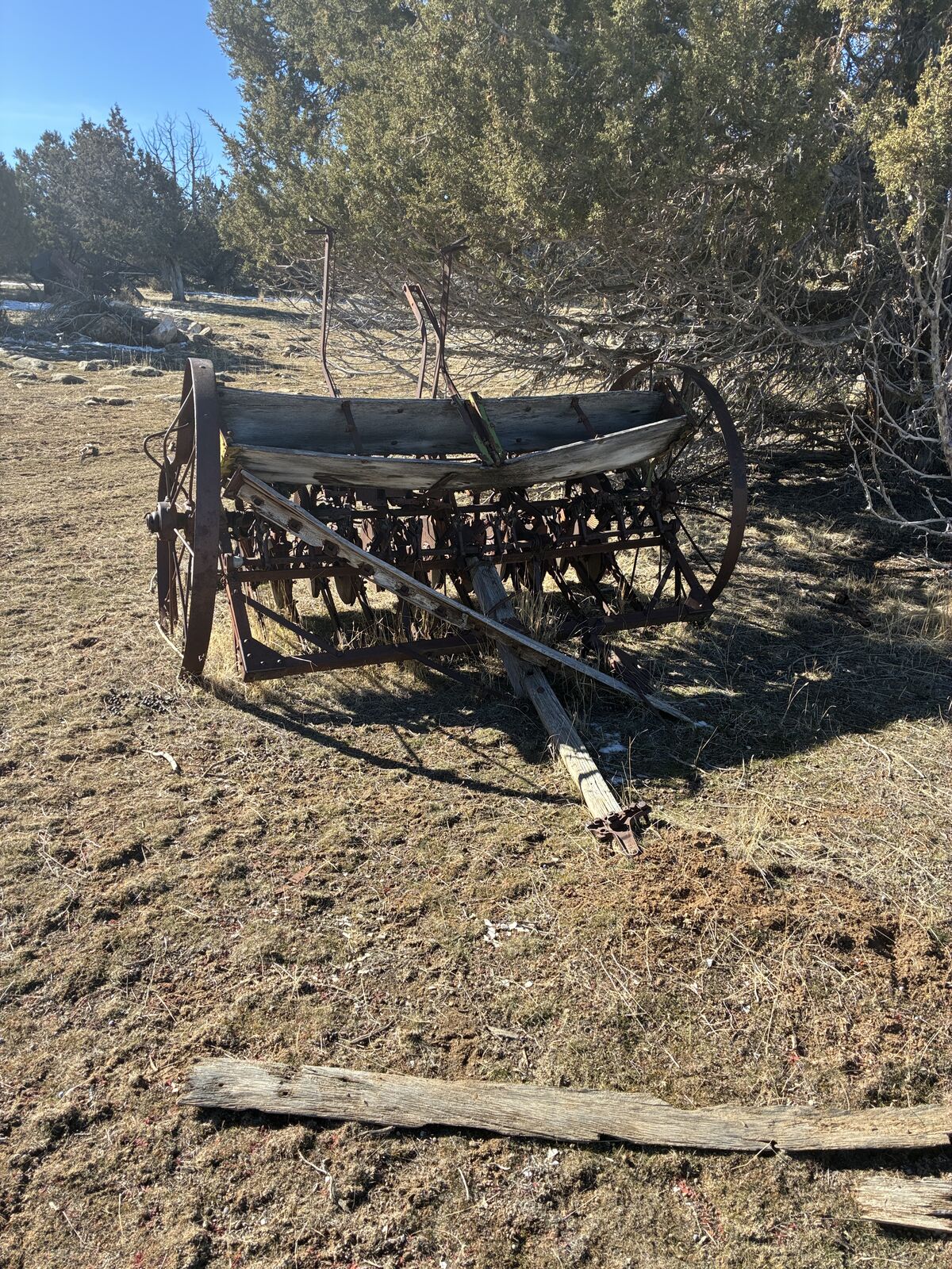 OLD GRAIN DRILL, YARD ART. I HAVE SEVERAL PIECES