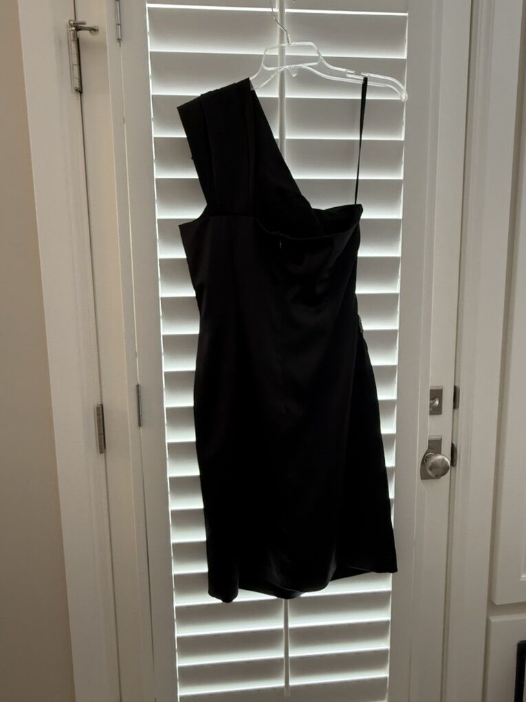 Black satin beaded formal cocktail dress. Size 14 Made by Eliza J Excellent condition