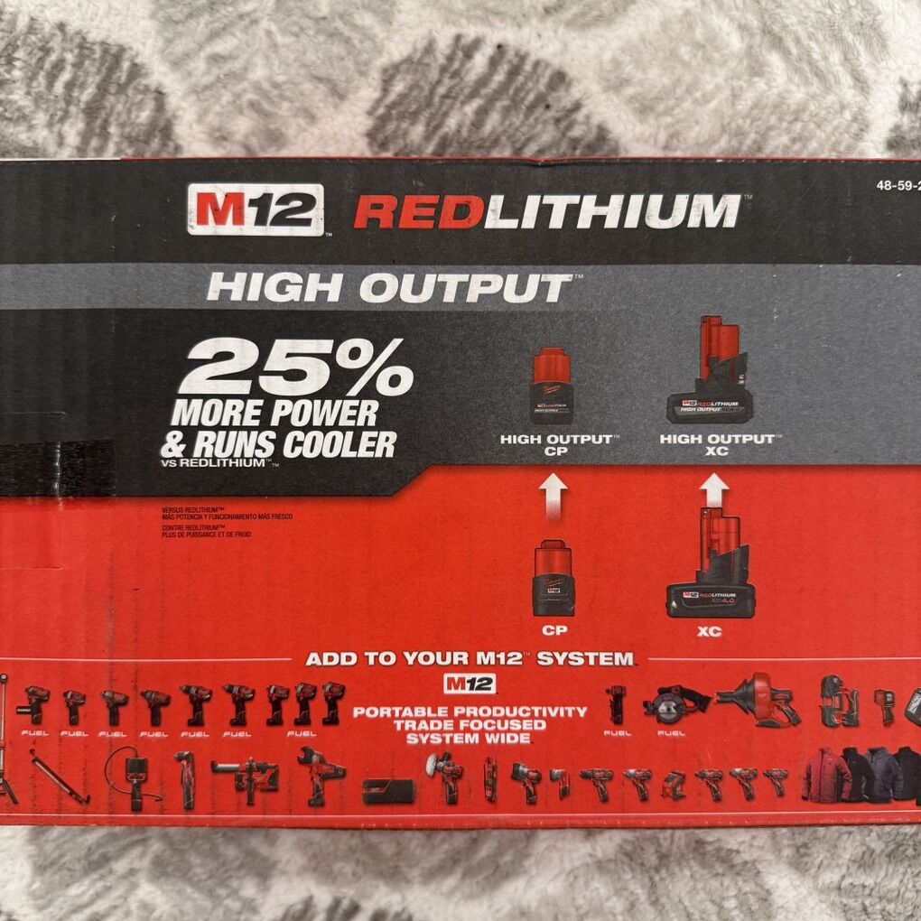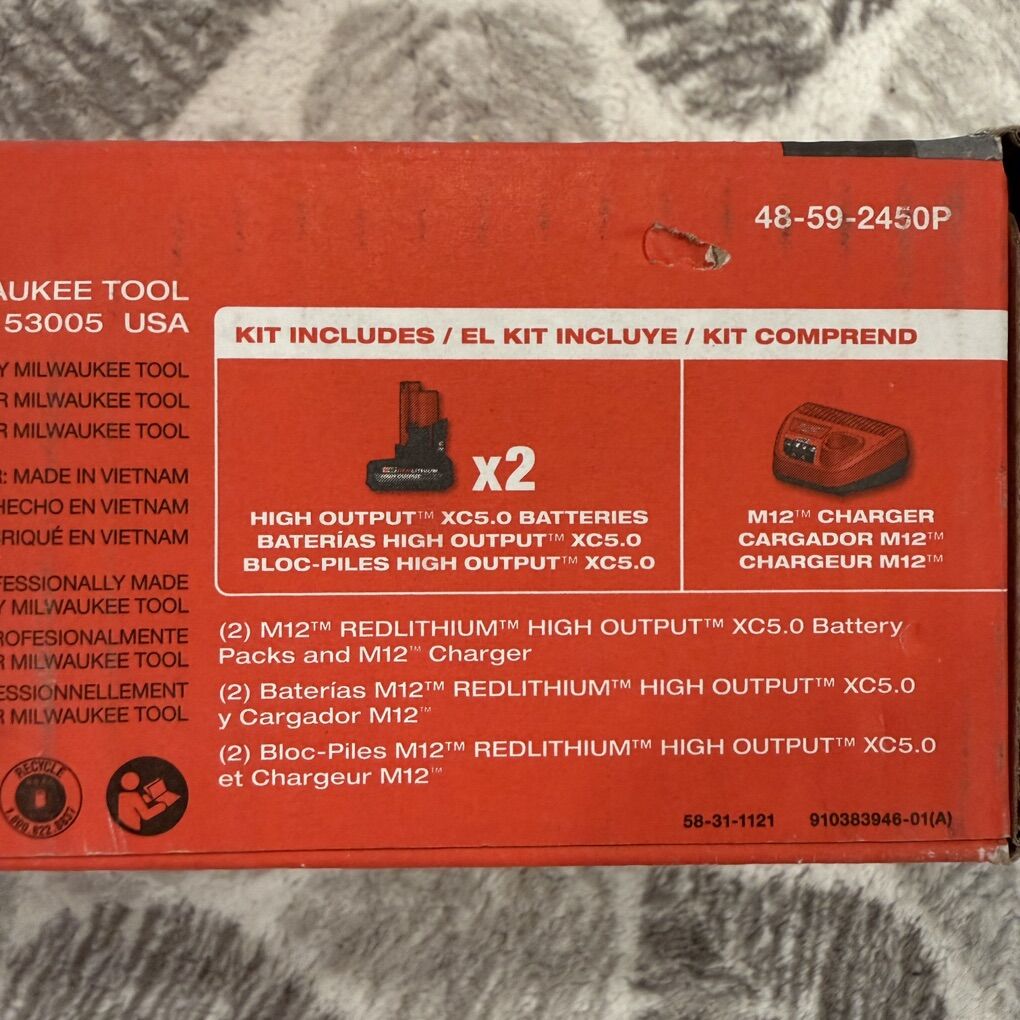 VenmoBrand New Milwaukee M12 REDLITHIUM High Output XC 5.0ah batteries (x2) + Charger Kit