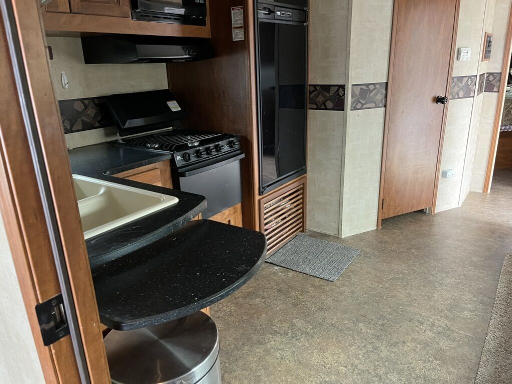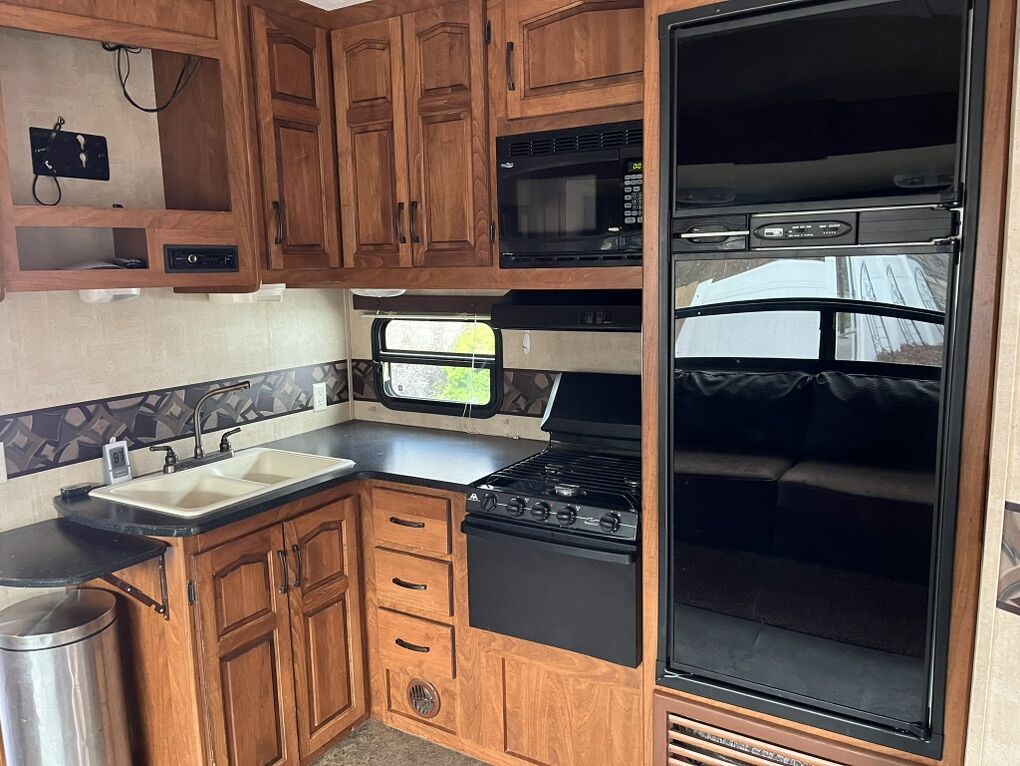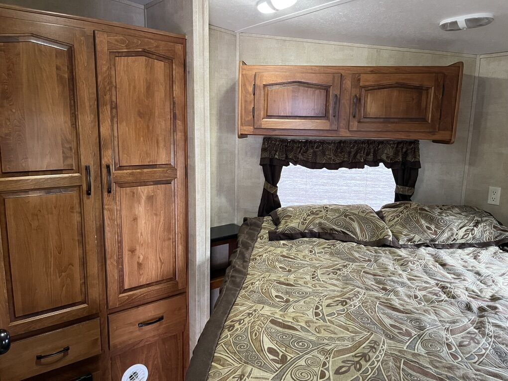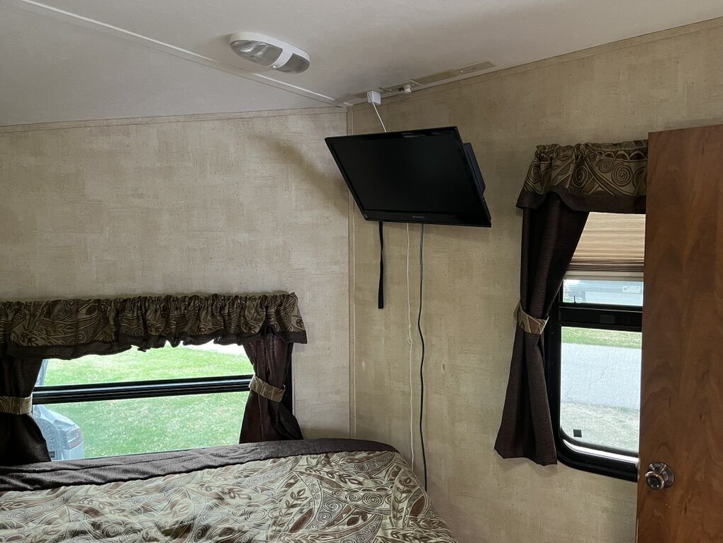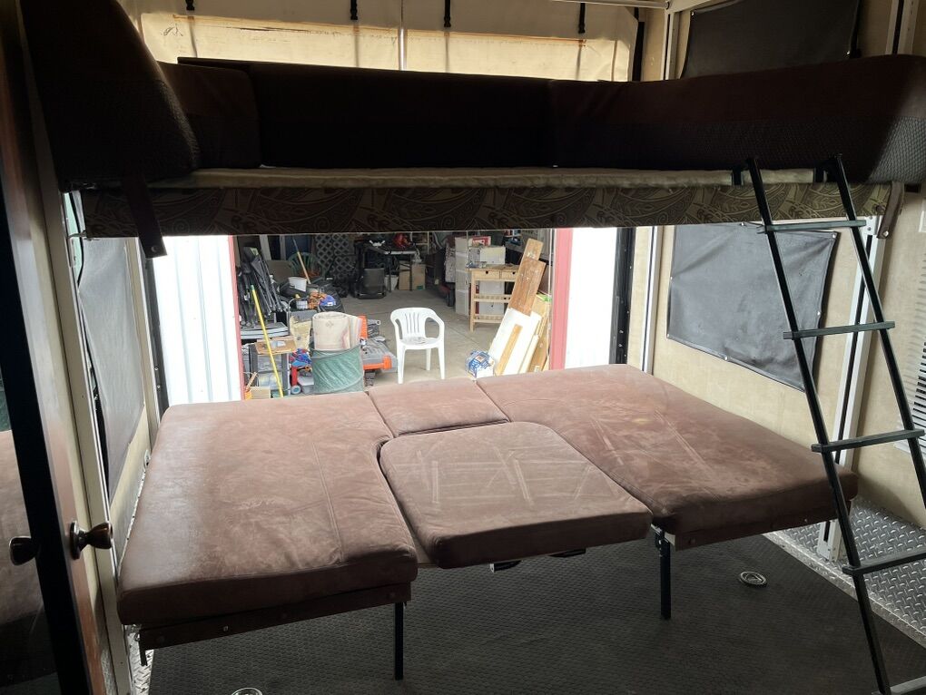 34ft 2012 Keystone RV Raptor Toy Hauler (M-30 FS-34) Garage is 10 ft long by 7.5 high. 75” under the bed when raised. It was used to haul a 2 seater Can am. Good condition all appliances/generator is working. It is located in Plain City.