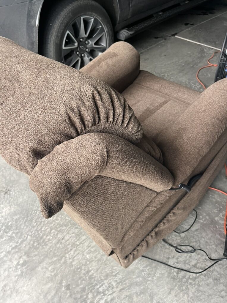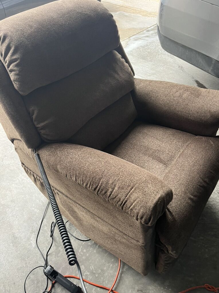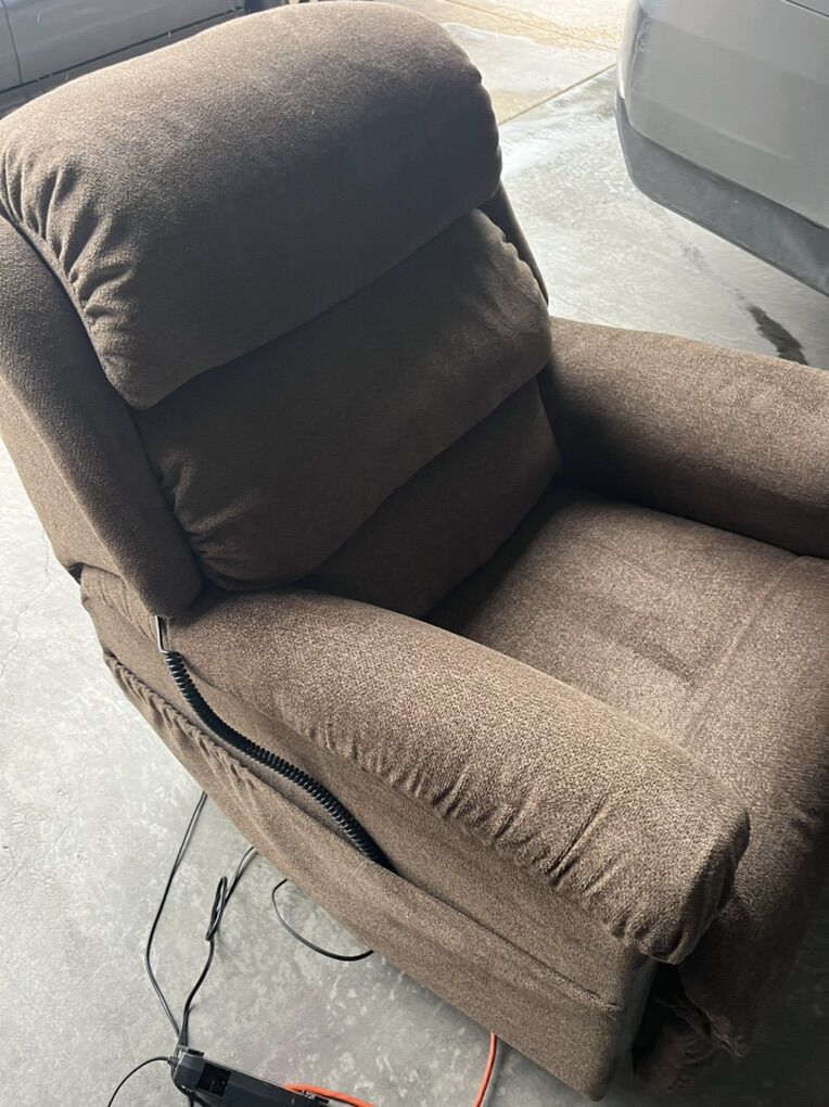 Lazy Boy Dark Brown Performance Fabric Power Lift Recliner located in Saratoga Spgs, check video and pictures, does a partial lift does not lift up all the way like a medical La-Z-Boy chair. Side pocket.