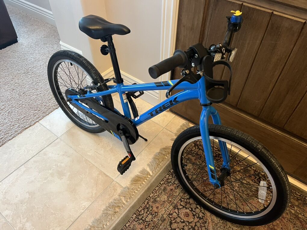 Trek Dark Blue Precaliber 20 Great Condition. See pictures, still plastic on pedals. Coaster Brake will have your little rider begging to go out for a pedal on their first real big kid bike. It's a great transition model from training wheels. It has one speed, a coaster brake, and a cupholder. Located in Saratoga Spgs Venmo cash very little use.