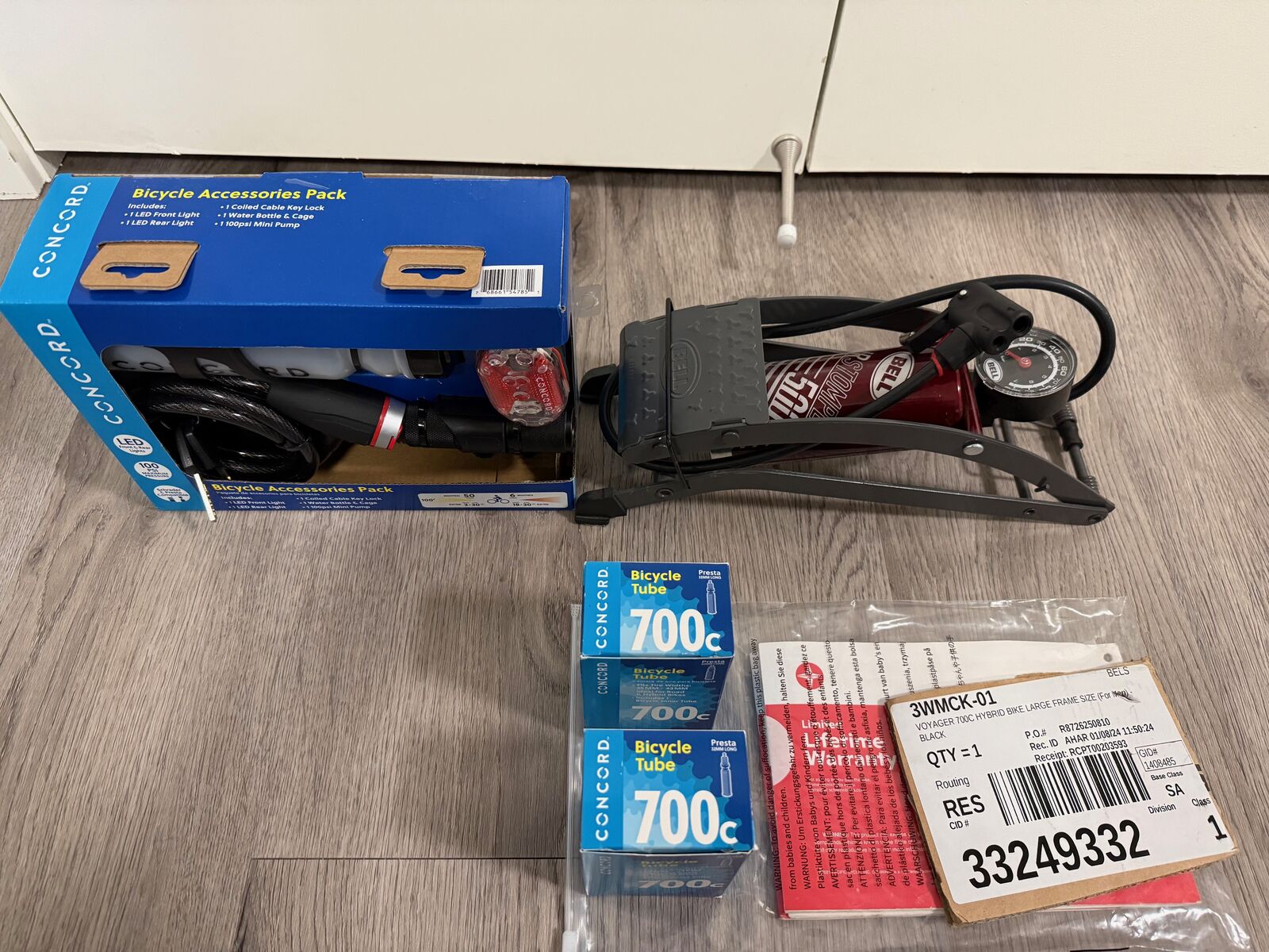 VenmoI rode it just once from Thankgiving Village to Saratoga. 21 speed, Quick release levers for the seat and both wheels. BTW, I am 6'1" tall. Front Schock absorbers. The price includes these accessories. 2 extra inner tubes. Foot Pump. Led Headlight, Led Tail Light, Keyed Cable Lock, Water bottle & cage, 1 Cup holder, 100 PSI Mini Air Pump, Manual.
