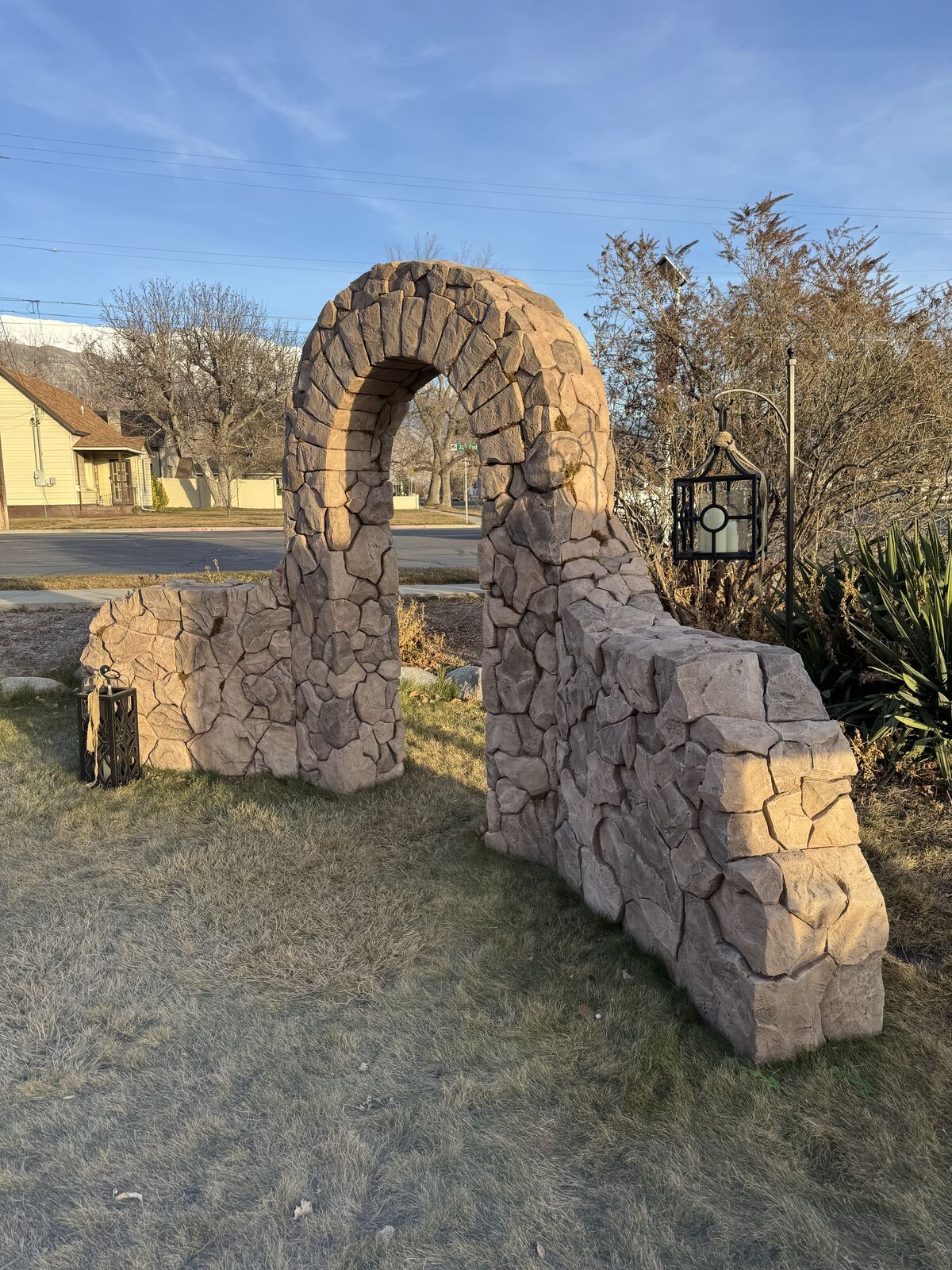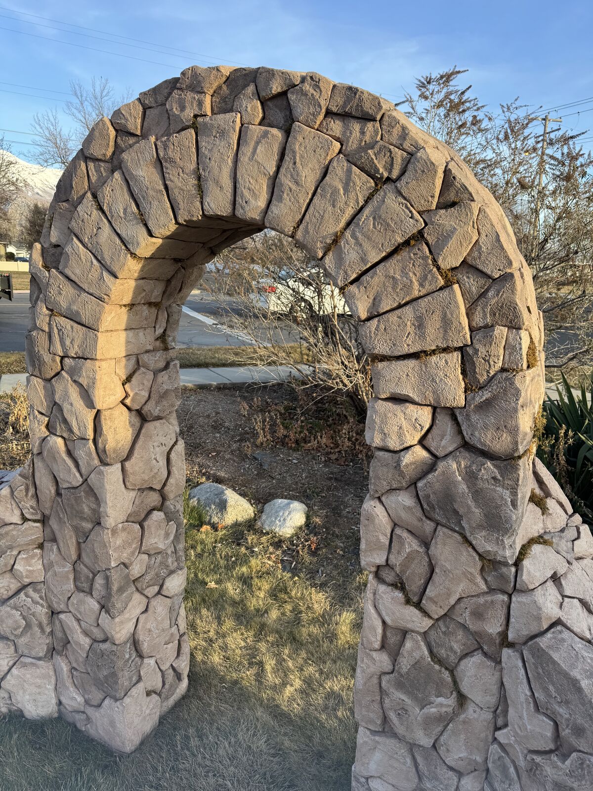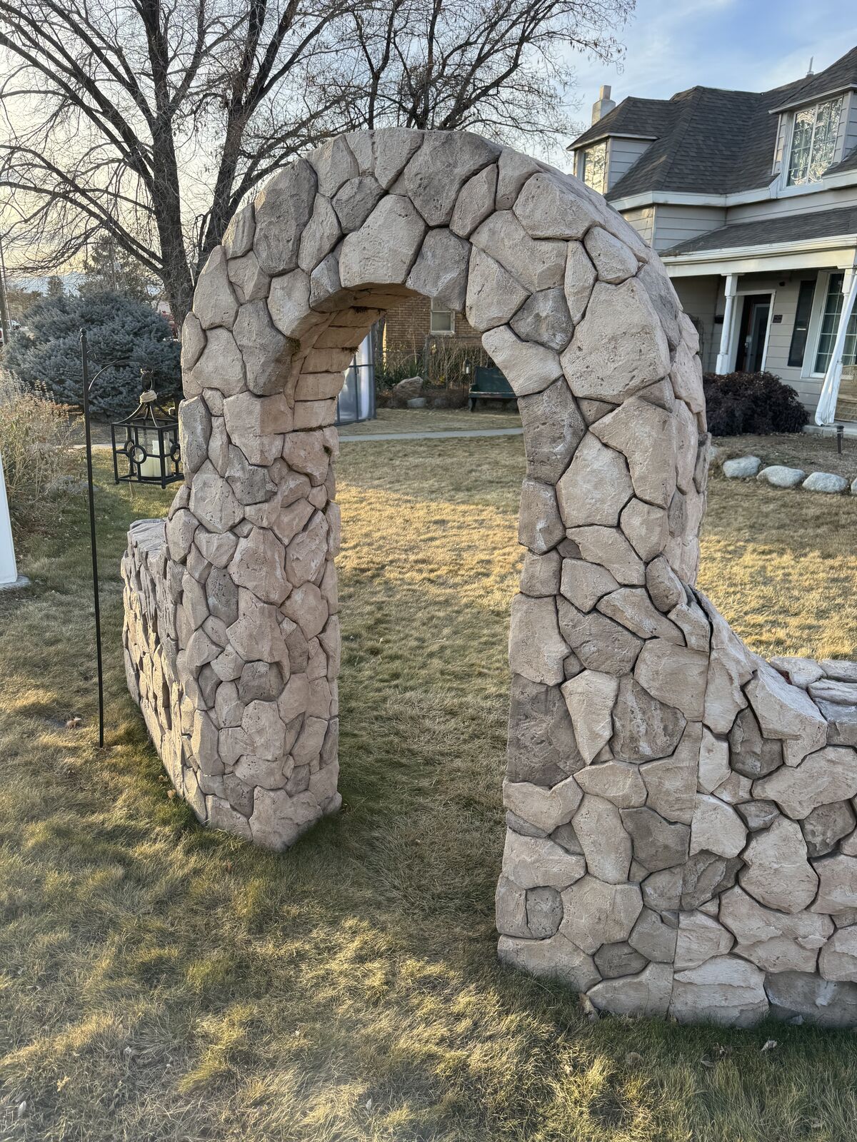 PayPalHand-Sculpted Faux-Stone Archway – for display, gardens, weddings or photo backdrop. Designed & sculpted by Steve Porter - freelance creative and custom scenic fabricator. Artfully shaped from solid foam blocks to resemble real stone, then surfaced with a protective all-weather coating & paint. 13 ft wide, 7.5 ft tall. At apx 120 lbs as shown, easily carried across a yard by three people. While extremely sturdy and stable as shown, breaks down into three pieces with walls separating from the center arch piece. For custom build ideas see StevePorterPhotography (dot com).