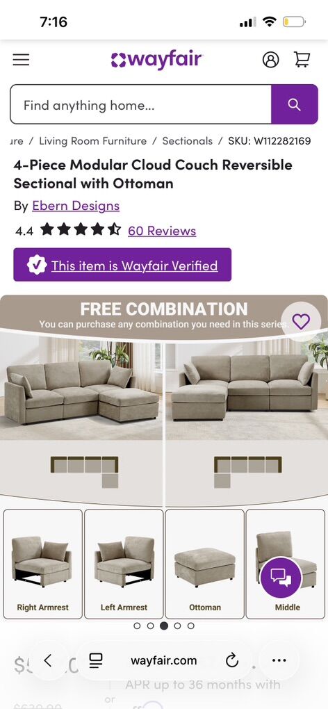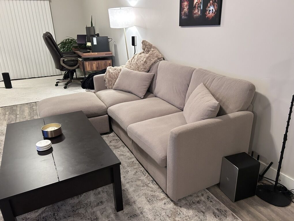 ApplePayKhaki colored sectional with ottoman included. Only 4 months old, in excellent condition (like new). Lightly used, no damage, no stains.
