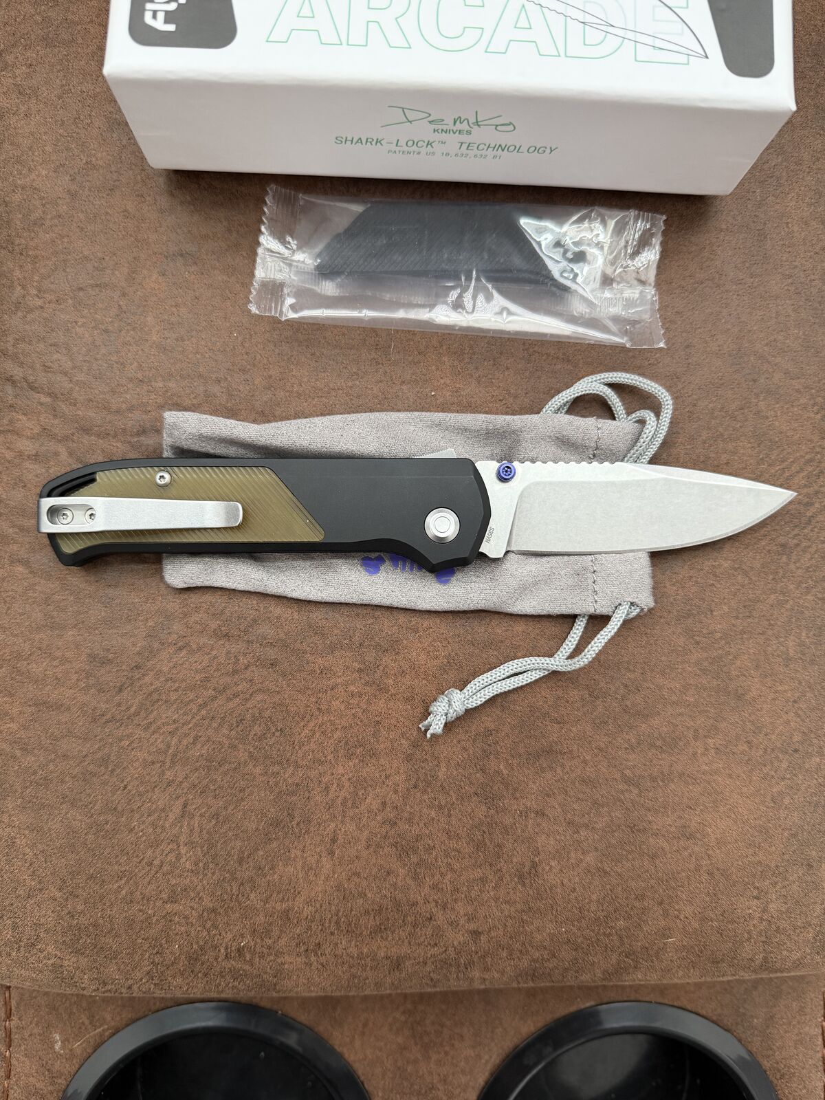 VenmoSelling my flytanium arcade. Action is fantastic. Knife is in excellent condition. Used lightly but has a sharp factory edge on it. S35VN blade. Includes the box, cloth pouch, and the black inlays.