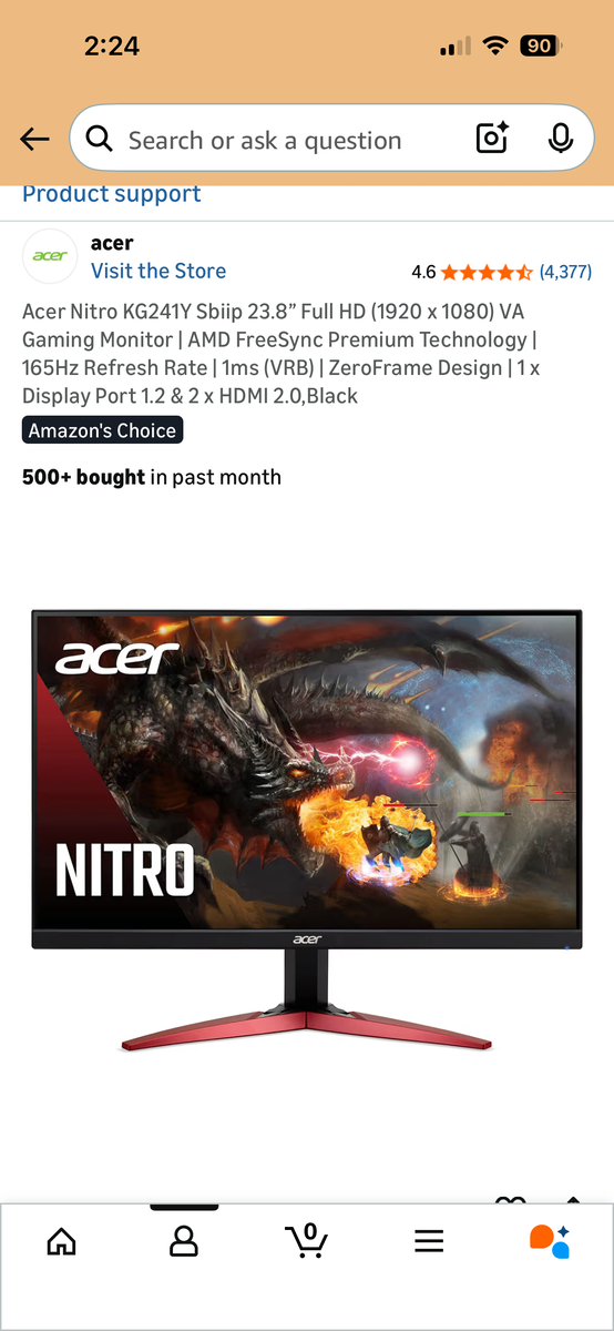 Acer Nitro KG241Y Sbiip 23.8" Full HD (1920 × 1080) VA