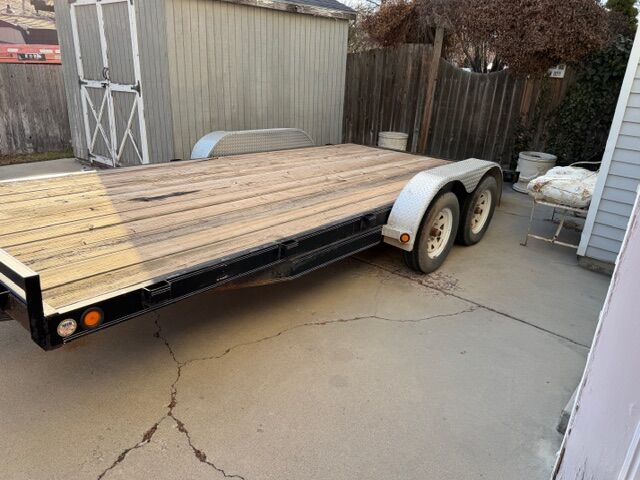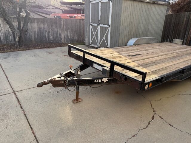 VenmoFlatbed trailer 20 X 7 foot. dual axel with 5 foot rear sliding ramps at 16 degree angle