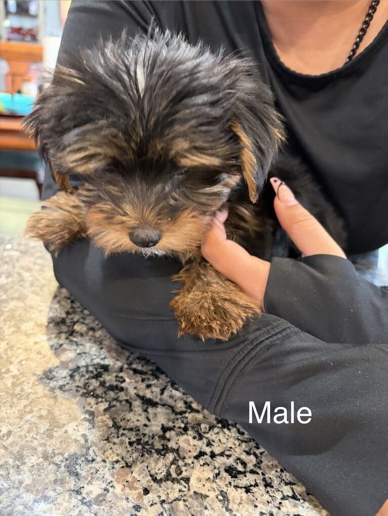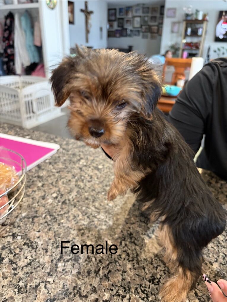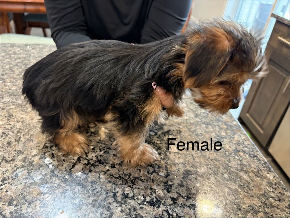 2 Yorkshire puppies born on December 9th of 2025. They have had their tails docked and dew claws removed, and they already have their first shots. Currently they are starting to be potty trained. They are ready for their forever homes. Male weights 1.5 pounds and the female weights 2 pounds. Dad is 6 pounds and mother is 3 pounds.