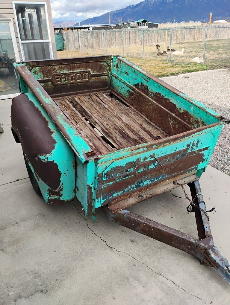 I have an old 40s/50s? dodge truck bed trailer. good tired. 500.00 I had a project in mind, but change of plans. would make a cool bar. or a good dirt hauler. I have a plastic bed liner that fits the bed.