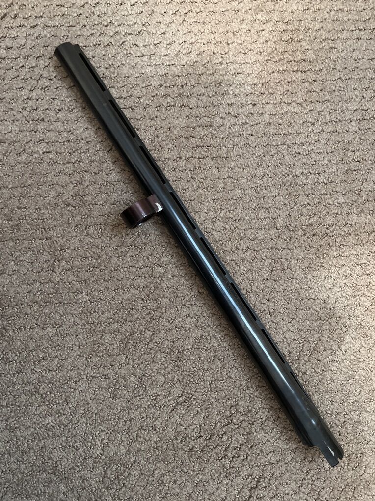 Originally a 3” full. Now an open choke that works on both a 3” or a 2 3/4” gun. The 3” ammo probably will not work in a 2 3/4” gun. The front sight is not there but it has the vented rib to sight with. Great for Skeet or self defense. I will ship for postage costs. Only $120.