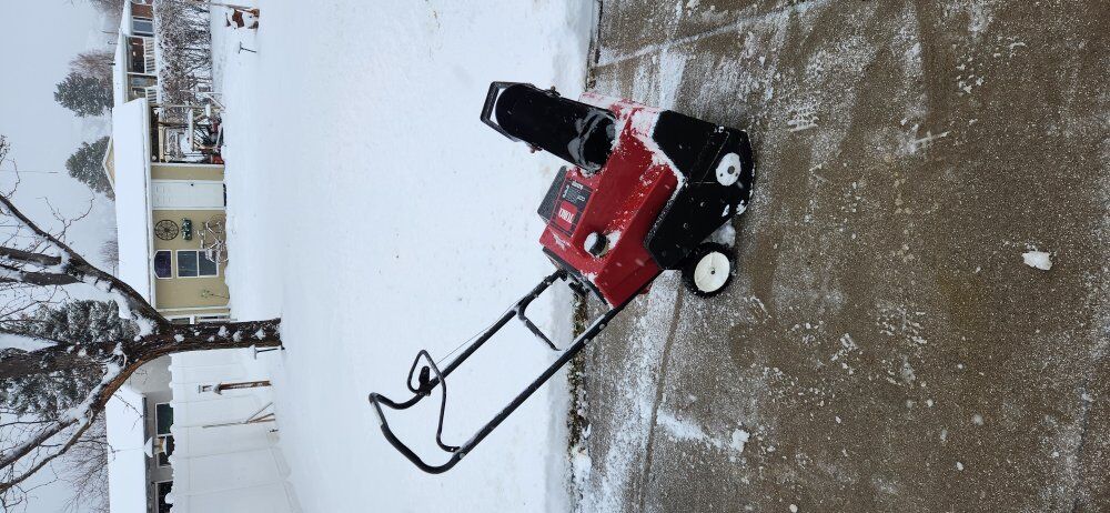 Just got done snowblowing my driveway works awesome -starts up easy -electric start and pull start -5.0 horse power engine 2 stroke\