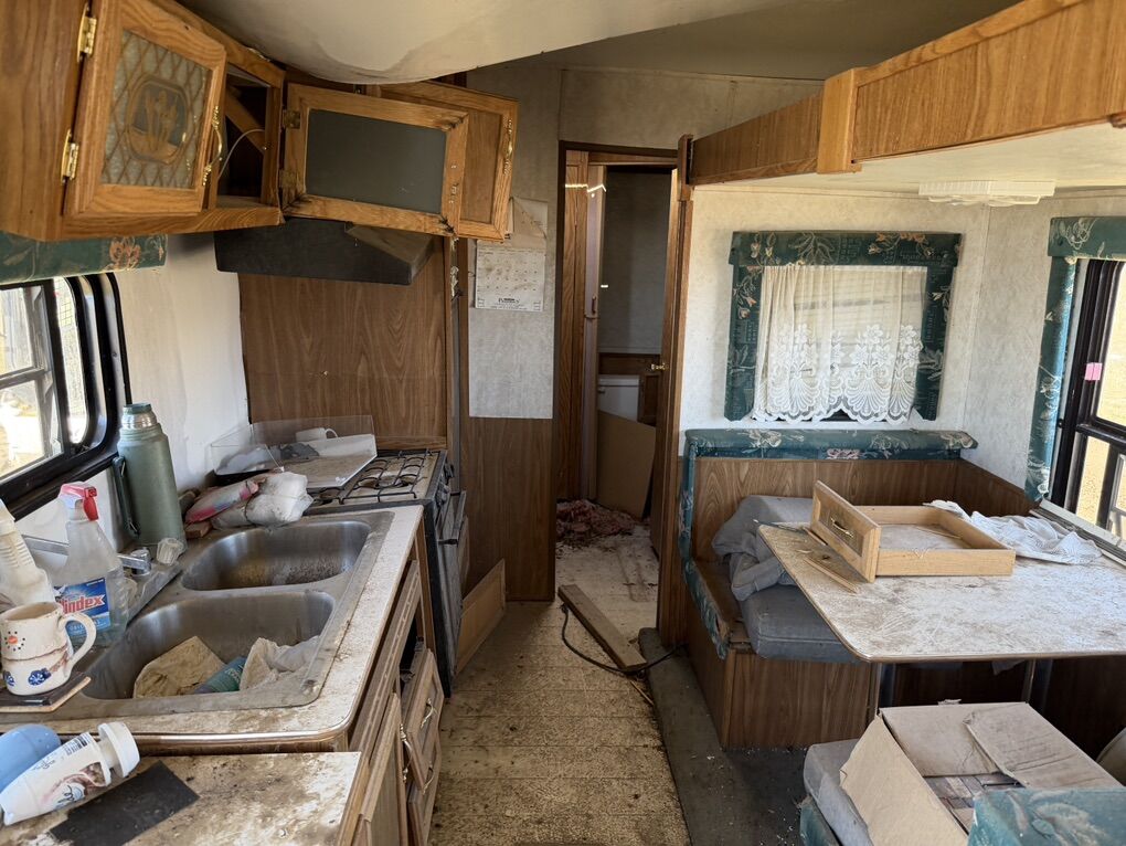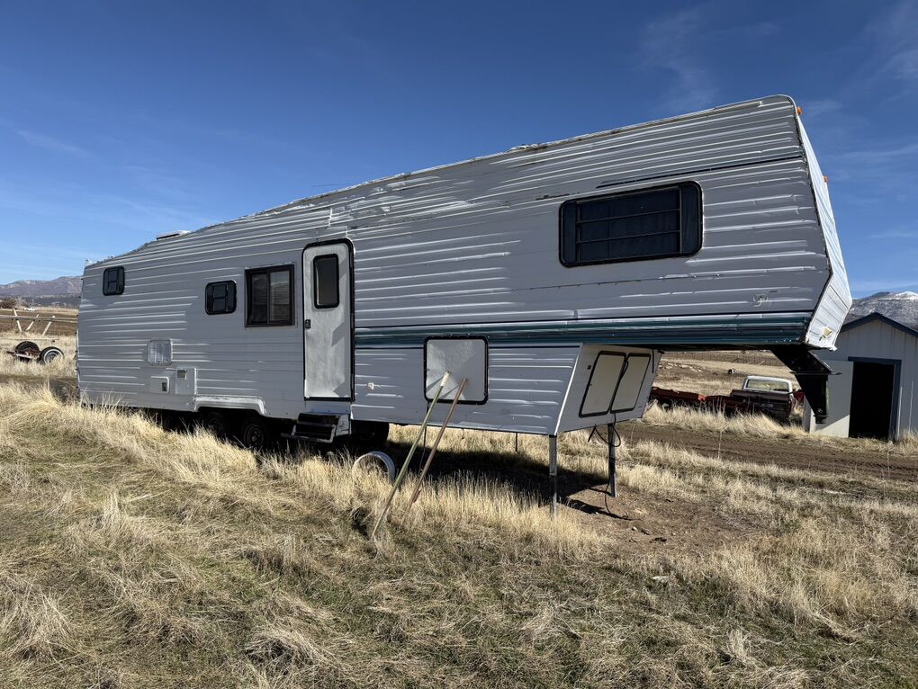 Free camper trailer – scrap or parts only. No title. Frame is good; structure has damage. Must haul away. First come, first served.