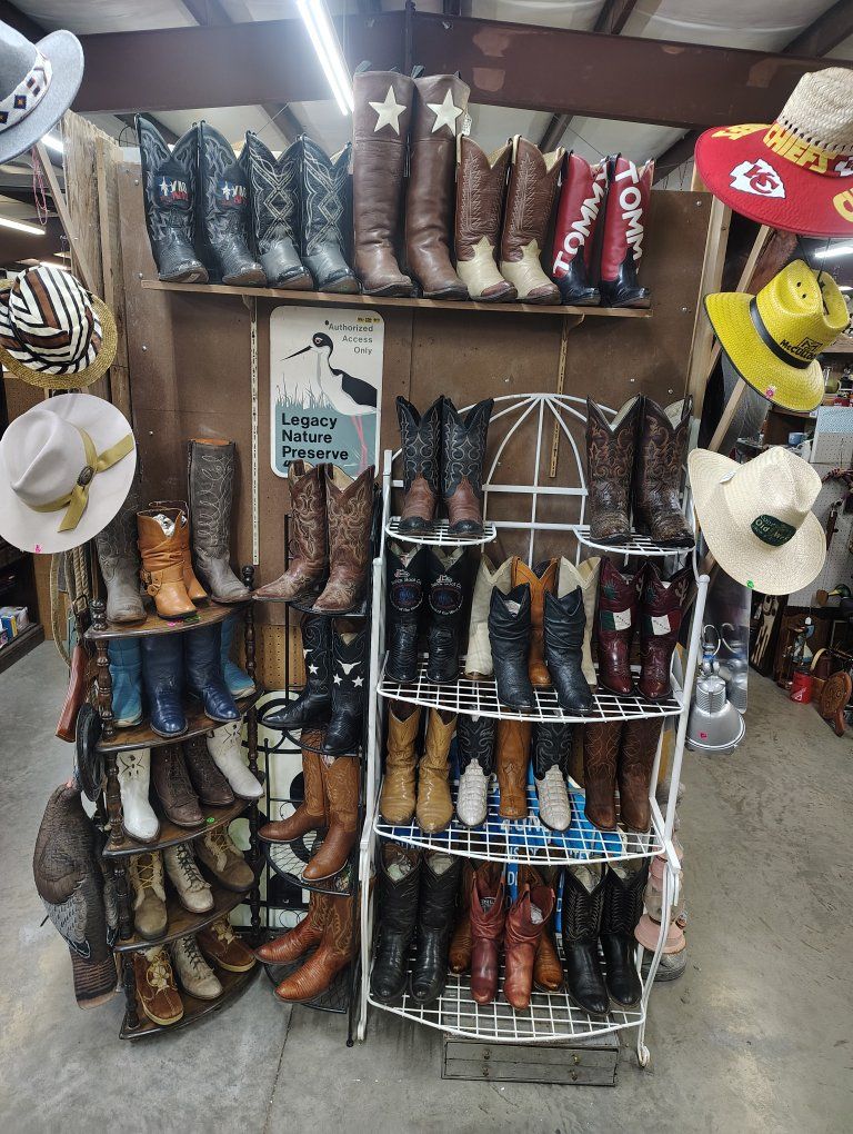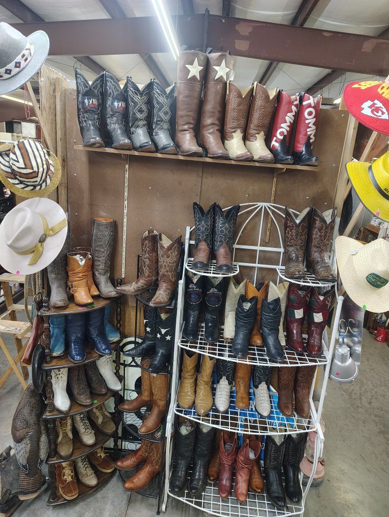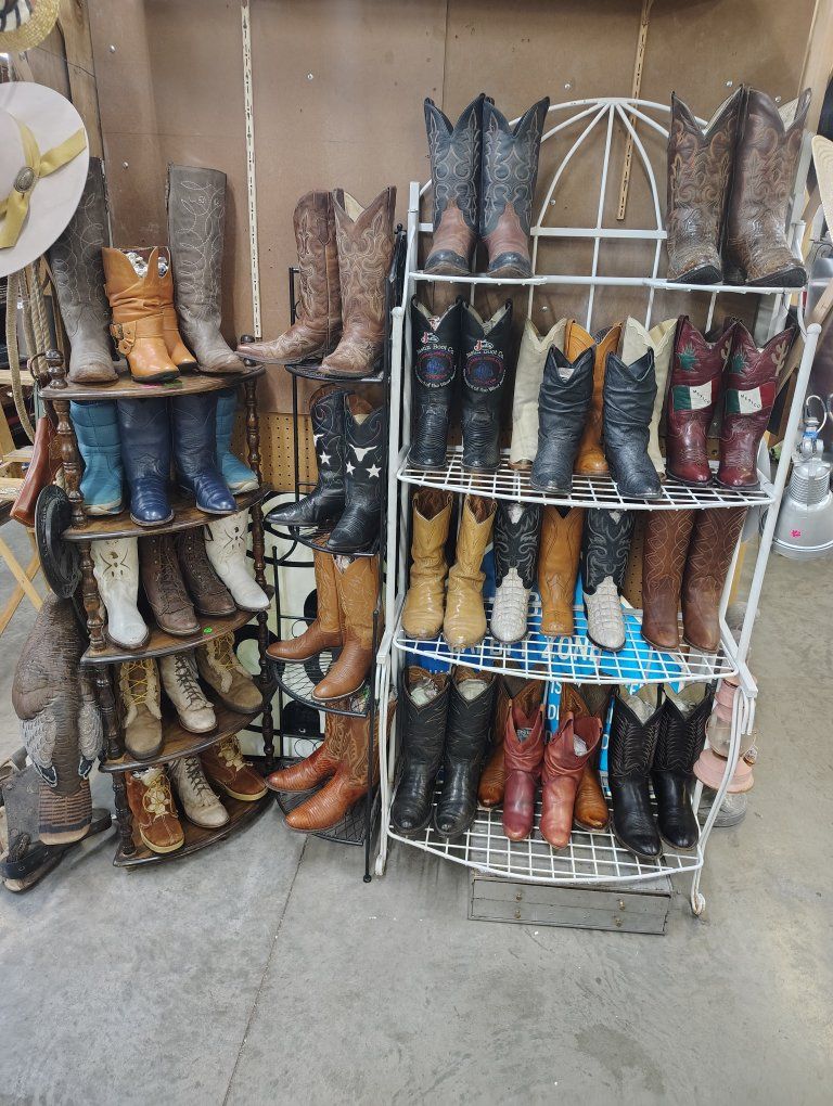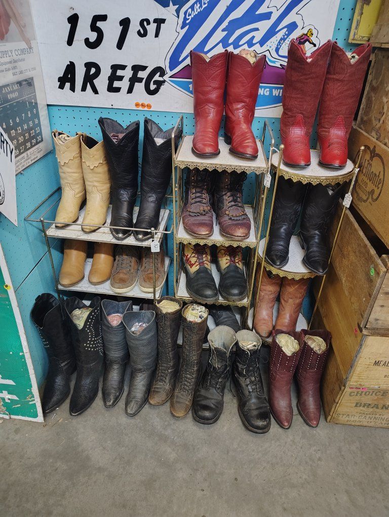 lots and lots of vintage cowgirl cowboy boots came into the treasures antique Mall this week never been for sale till now around 50 pair of cowboy boots for sale in the north building a different group then 3 weeks ago all boots for sale in the store not on KSL. 30 more pair came in this week in the antique store