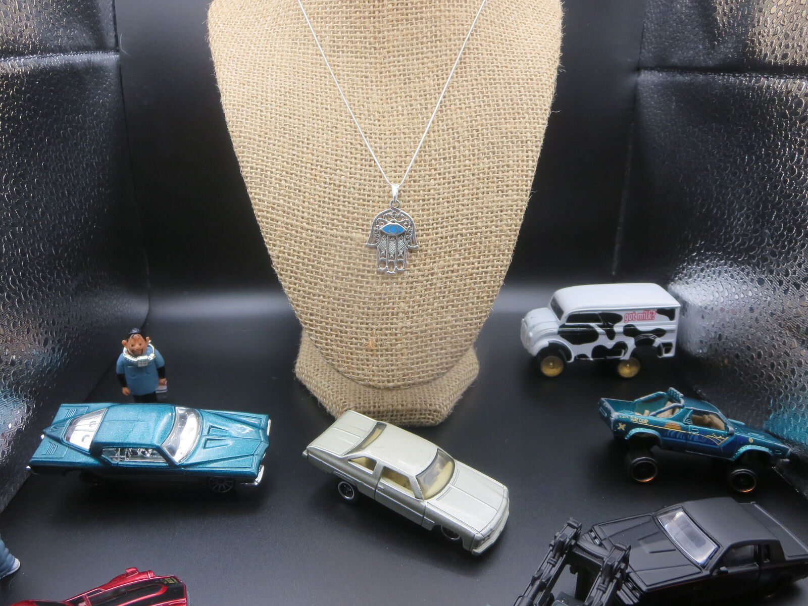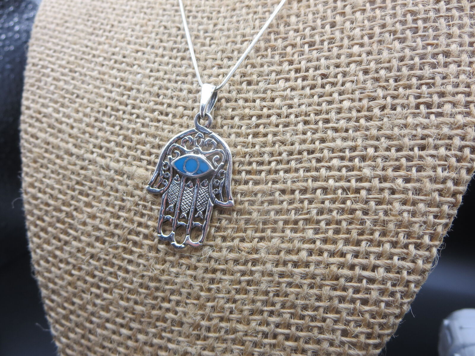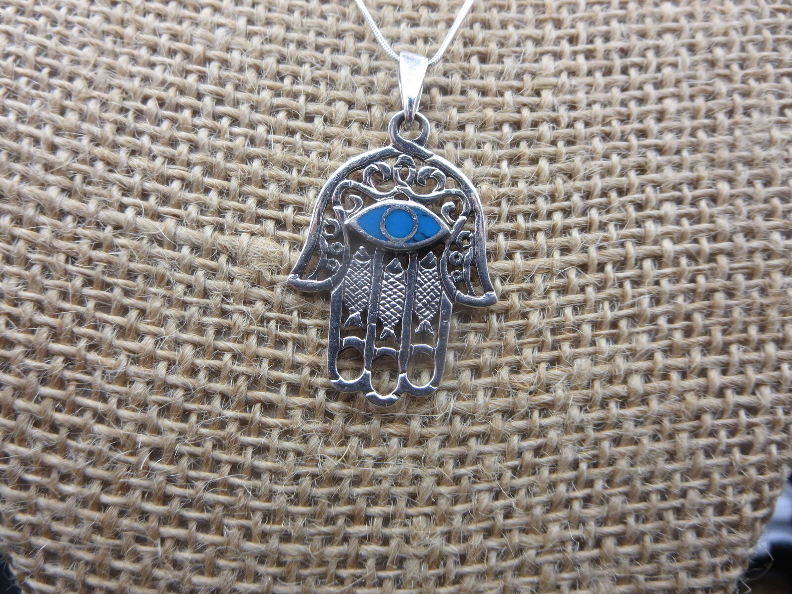 I have a. Sterling silver Yue Yuan hand pendant with 18" box necklace. for sale call or text only thanks for lokking D.