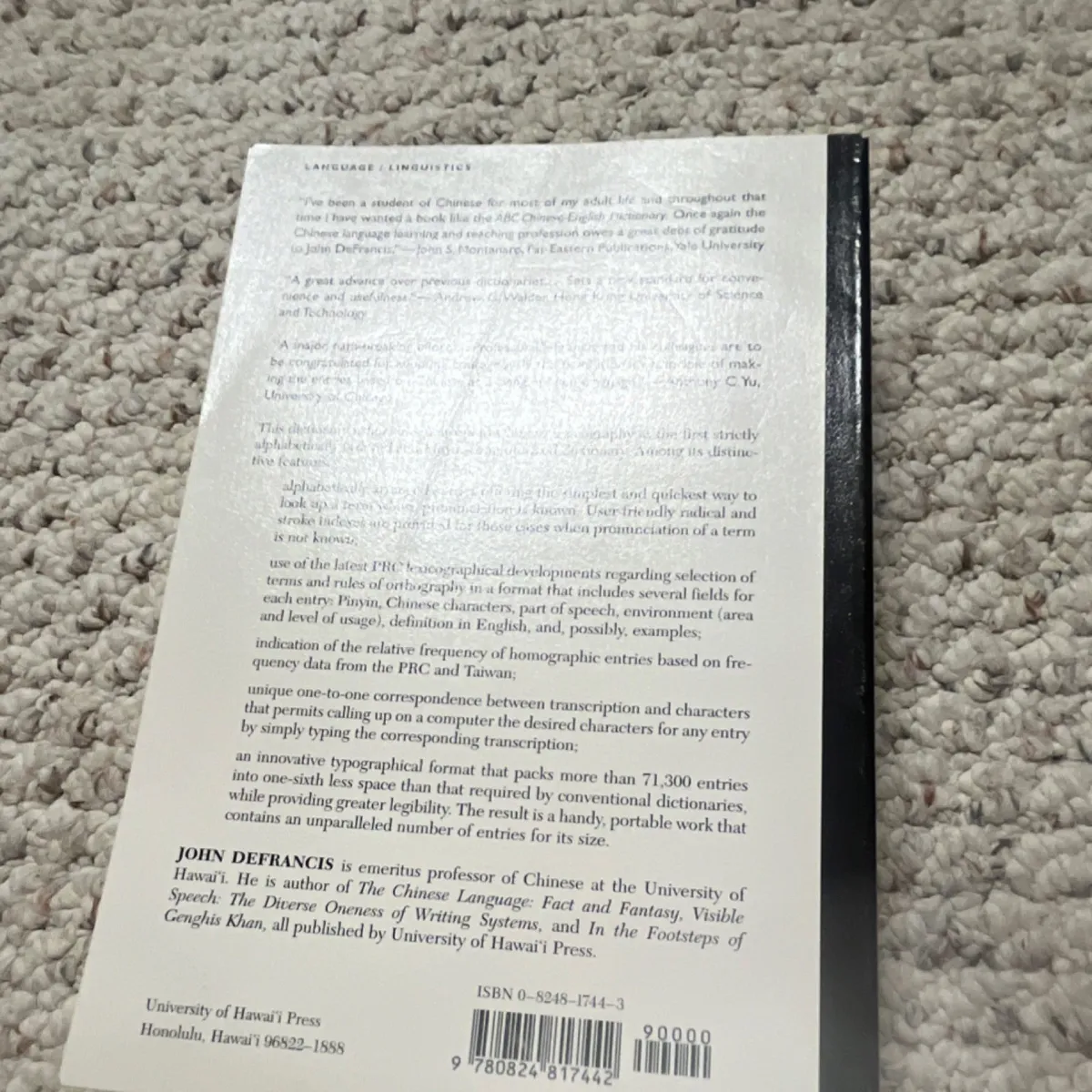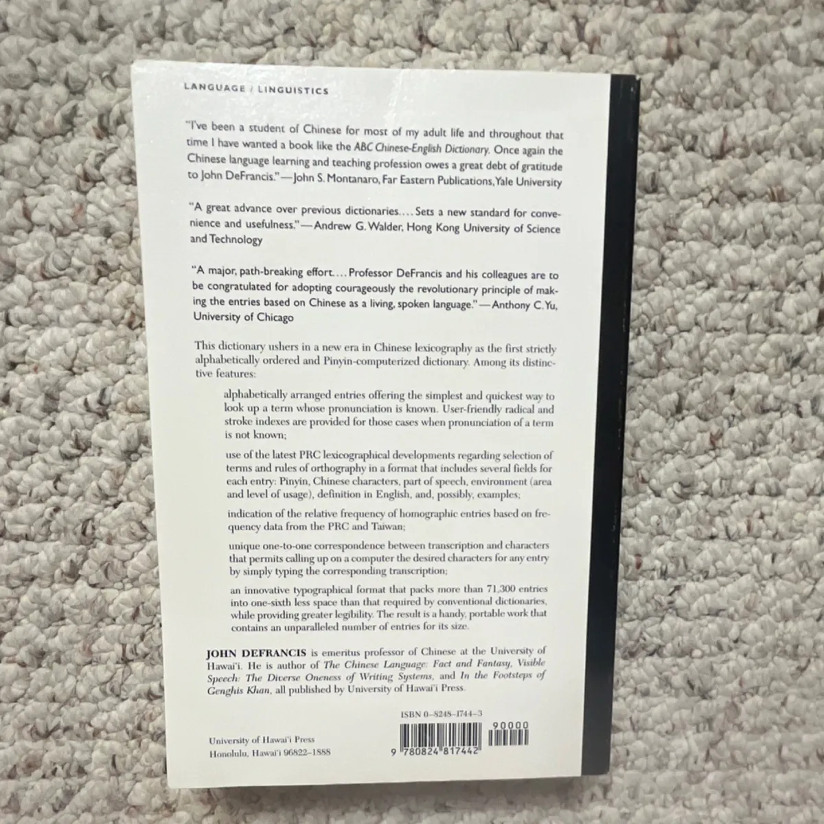 The ABC Chinese-English Dictionary, authored by John DeFrancis and published by the University of Hawaii Press in 1996, is a comprehensive bilingual dictionary aimed at proficiency-level foreign language study. With a focus on the alphabetically based organization of words, this book covers a wide range of subjects related to English and Chinese languages. The dictionary features a computerized layout and spans across 920 pages, making it a valuable reference tool for those seeking to enhance their knowledge and skills in both English and Chinese.