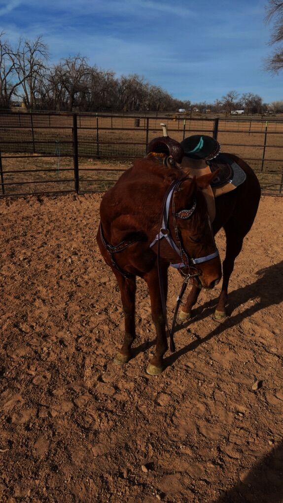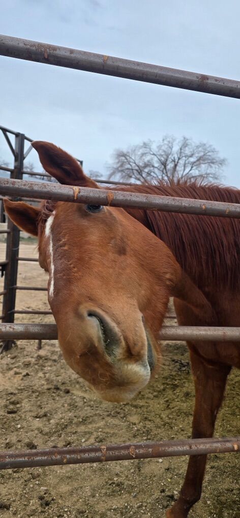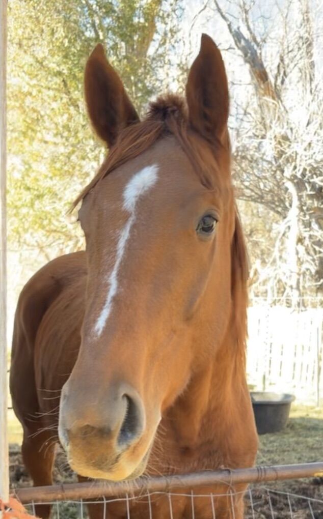 Maggy is a 4 year old tb filly I got told she was track trained but wasn’t cut out for it so they sold her She has no papers Im guessing she’s around 15.3 She hasn’t been ridden since September but it near ready to be put back undersaddle We have done alot of ground work with her She can be nippy and mean but after she’s done trying to push buttons she’s the sweetest baby brained horse She had her teeth done in September and feet done 2 weeks ago she is barefoot She is a attention hog and loves kisses we are still working on backing up and saddling not at a trailer but she is doing a lot better NOT FOR BEGINNERS OR INTERMEDIATES Located in cedar city / Enoch area.