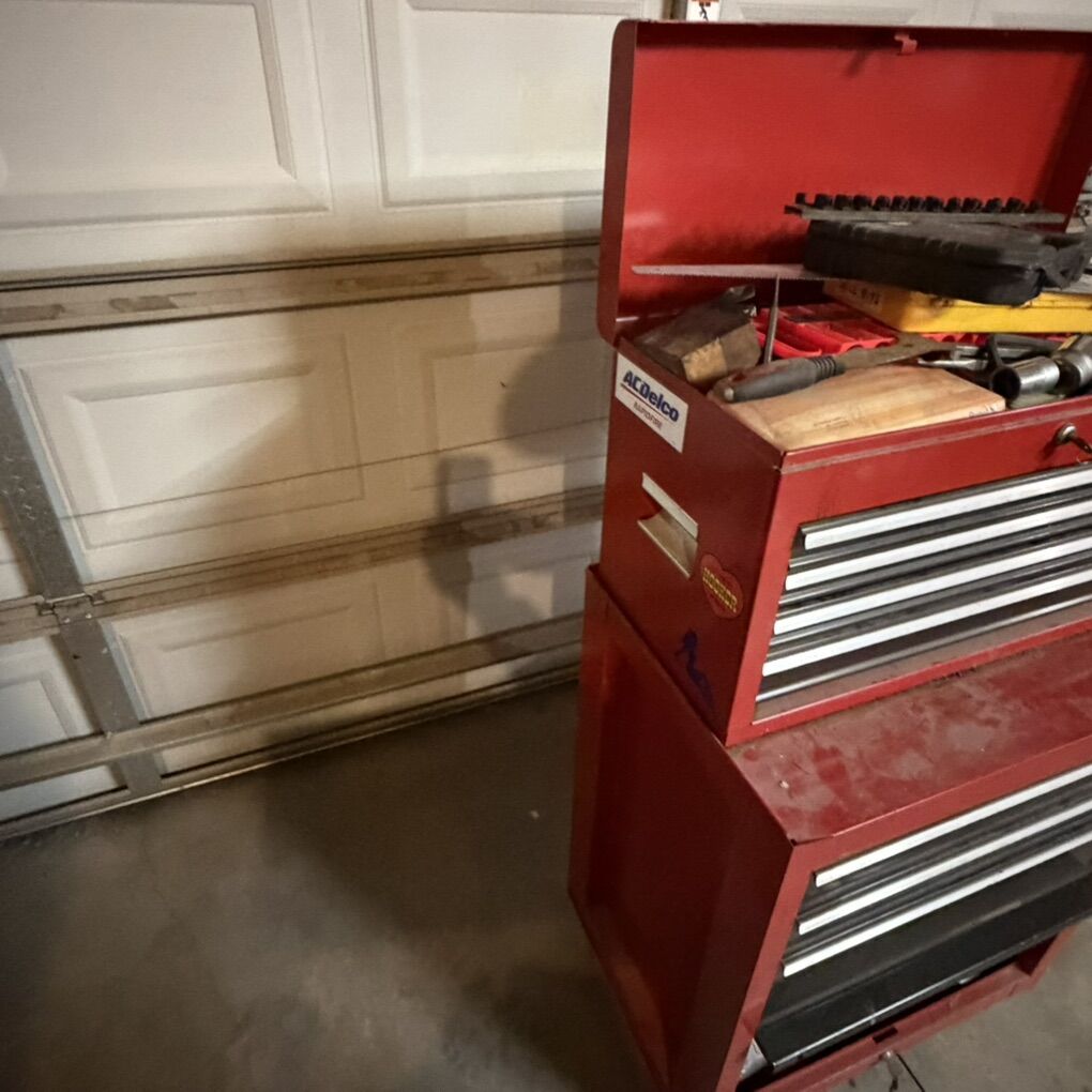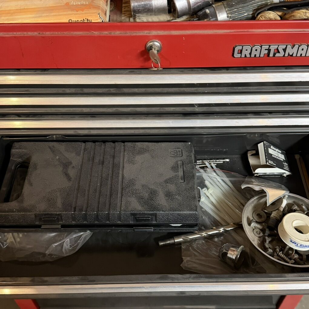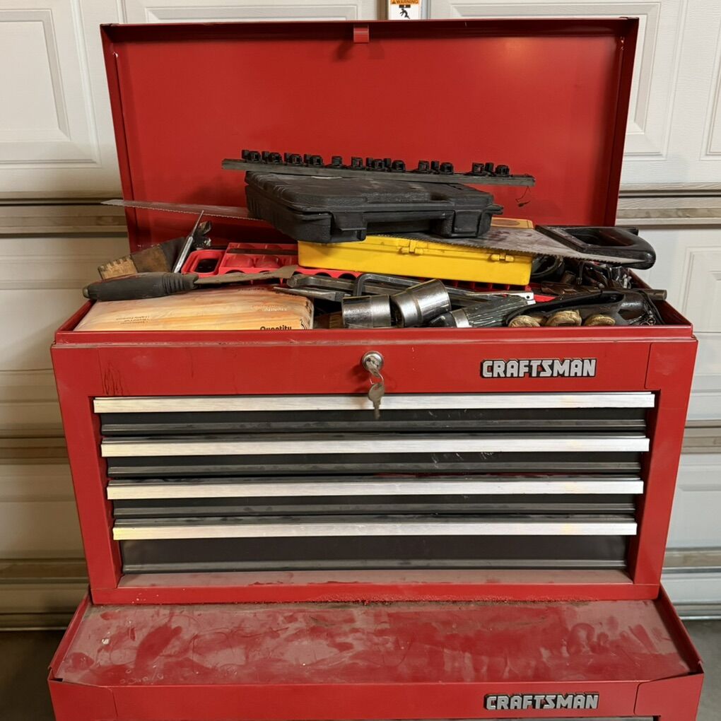 VenmoPRICE IS FIRM. Everything is working. Comes with keys for both upper and lower. Random tools are included. Needs a good cleaning. Looks like something spilled on it. Paint damage on top of cart and lower part of chest. First come first served. Will not hold.