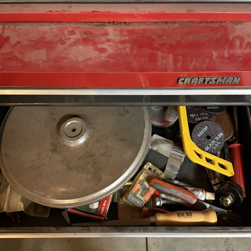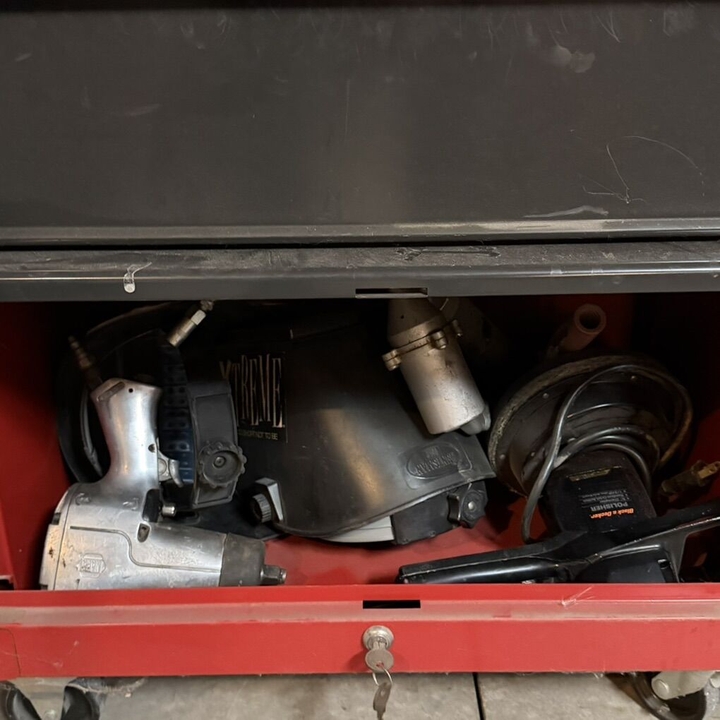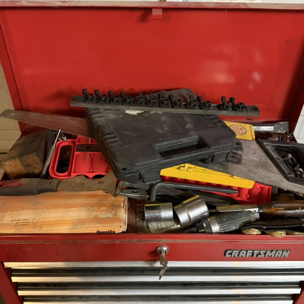 VenmoPRICE IS FIRM. Everything is working. Comes with keys for both upper and lower. Random tools are included. Needs a good cleaning. Looks like something spilled on it. Paint damage on top of cart and lower part of chest. First come first served. Will not hold.