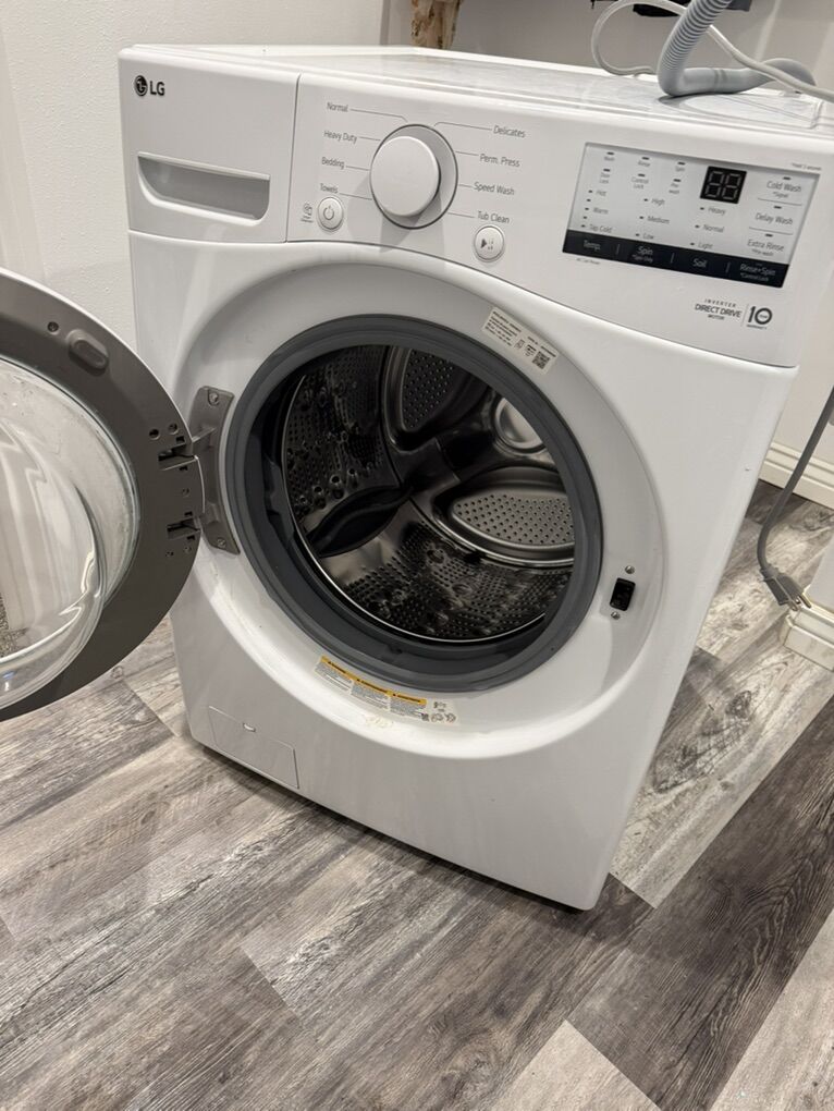 ZelleI have a LG washer that is about two years old. It works fine. The only problem is that it has a small leak when it’s running so you end up with about a eight or so inch puddle underneath it at the end of a cycle. I can’t figure out where the leak is coming from so if you’re handy and can figure that out and would like a good washer for less this could be for you. Other than that, it runs fine wash is fine. Has no other issues. Please call or text at any time. Thanks for looking.