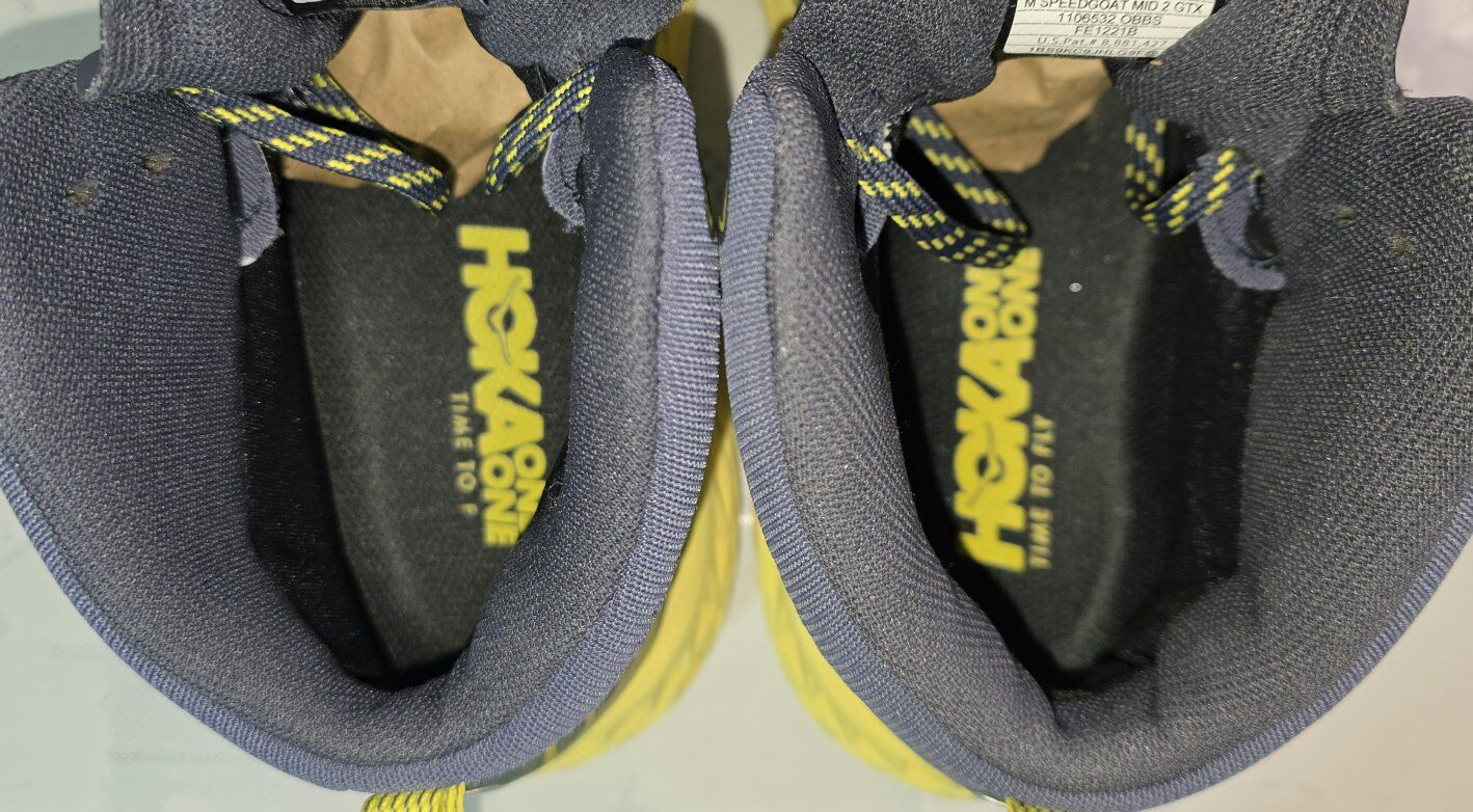 Pre-Owned HOKA ONE ONE SPEEDGOAT MID 2 GTX OMBRE BLUE SHEEN 1106532 OBBS MEN'S SIZE 10.5, In excellent conditions, like new. Equal parts Speedgoat and mid-cut fast hiker, the Speedgoat MID 2 GTX is that sweet spot between a trail runner and hiking boot. Featuring an anatomically designed collar for additional ankle support, the Speedgoat MID 2 GTX performs in a variety of weather thanks to a GORE-TEX bootie. A speed hiker with a Vibram® Megagrip outsole, the Speedgoat MID 2 GTX is a force to be reckoned with on any day. See all photos, text message is better, see my other adds, thank you.