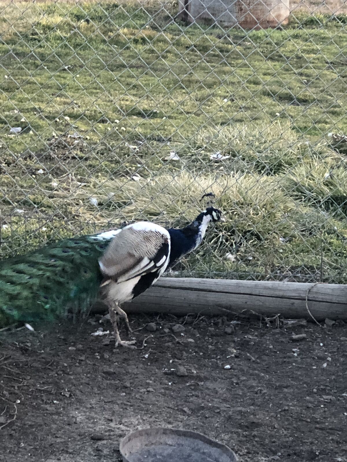 Beautiful pied peacock (3 years old) striking markings! No hens available.